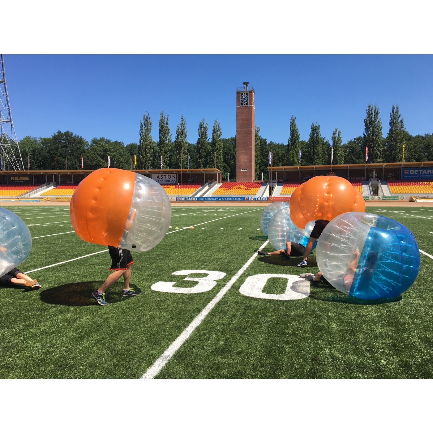 A Bumper Ball TPU Premium tökéletes választás mindazok számára, akik szeretik a kihívásokat, az aktív csapatjátékot és a versenyt! Bár a gyerekek imádják ezeket a játékokat, a felnőttek is rajonganak értük. A Bumper Ball gyakorlatilag minden testmagassághoz alkalmazkodik. Nem kell aggódni a zúzódások vagy horzsolások miatt – a felhasznált anyag kiválóan ellenáll az ütközéseknek. A legerősebb Bumper Ball TPU Premium modelleket 10 vagy több fős csapatok számára terveztük. Ilyen létszámmal két csapatot lehet alkotni, és valódi mérkőzést játszani. Ezeket a felfújható labdákat szívesen választják szabadtéri rendezvényszervezők – városi ünnepségek, családi napok, céges események vagy csapatépítők alkalmával. Remek ötlet lehet magánrendezvényekre is, például születésnapokra, legény- vagy leánybúcsúkra, családi összejövetelekre stb. A Bumper Ball felfújható labdák biztonságos, magas szintű szórakozást kínálnak. A csapatjáték élménye garantáltan mosolyt csal mindenki arcára, korosztálytól függetlenül!