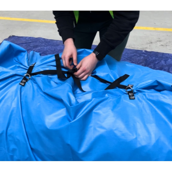 Tapasztalja meg a felfújható attrakciók tárolásának új minőségét egy olyan szabadalmaztatott fedéllel, amely garantálja a biztonságot és a funkcionalitást, miközben megkönnyíti a felfújható attrakciók szállítását. Üzleti célokra tervezték, praktikus és tartós védelmet nyújt bármilyen felfújható attrakció számára, a váraktól a csúszdákig. A huzat tartós PVC-ből készült, véd a külső elemektől és megkönnyíti a tárolást. Az univerzális fedél ideális nagy várakhoz és nagy csúszdákhoz, mint például: D8 vagy D5. Az egyszerű, mindkét oldalon kötéssel ellátott kialakítás javítja a felfújható légvár gyors becsomagolását mindkét oldalon.