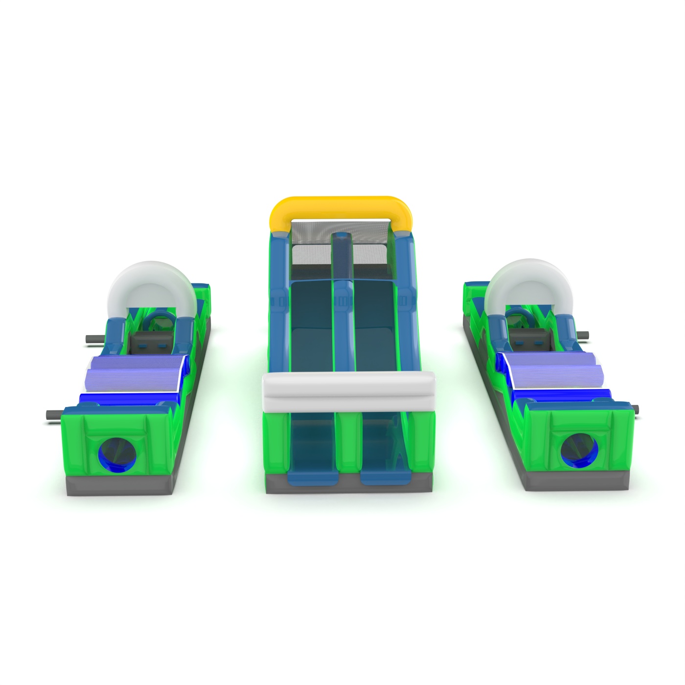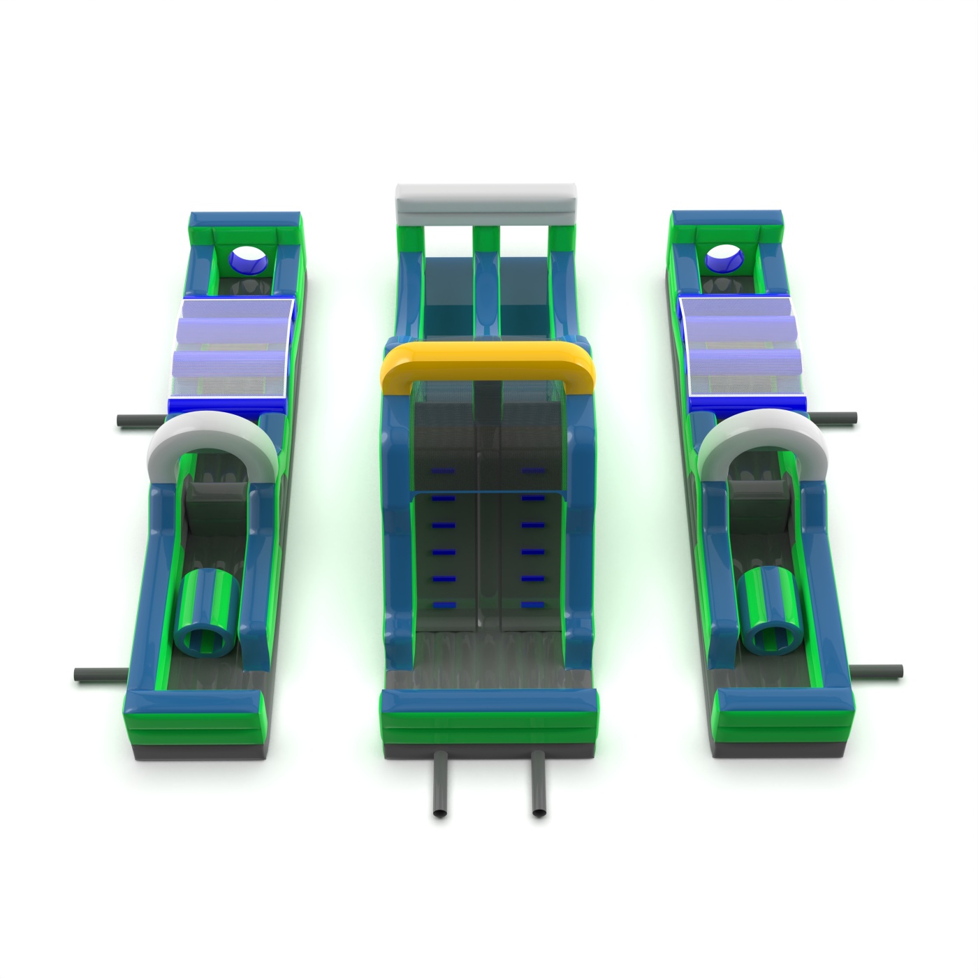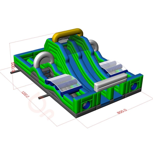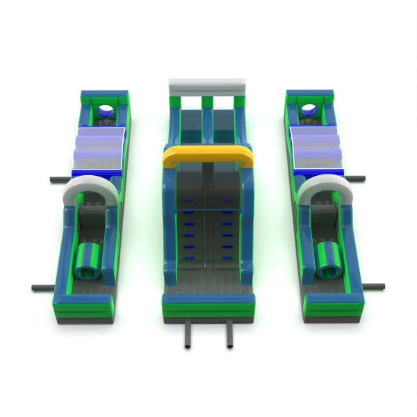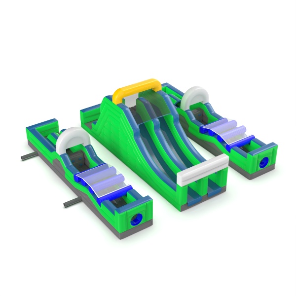 A dupla felfújható akadálypálya széleskörű attrakció, amely adrenalint és versenyt biztosít a résztvevőknek. A különféle akadályokkal, például csúszdákkal és mászófalakkal ez a pálya rengeteg izgalmat és nagyszerű szórakozást garantál mind a gyermekek, mind a felnőttek számára. Ideális fesztiválokra, vállalati rendezvényekre és szabadtéri eseményekre.