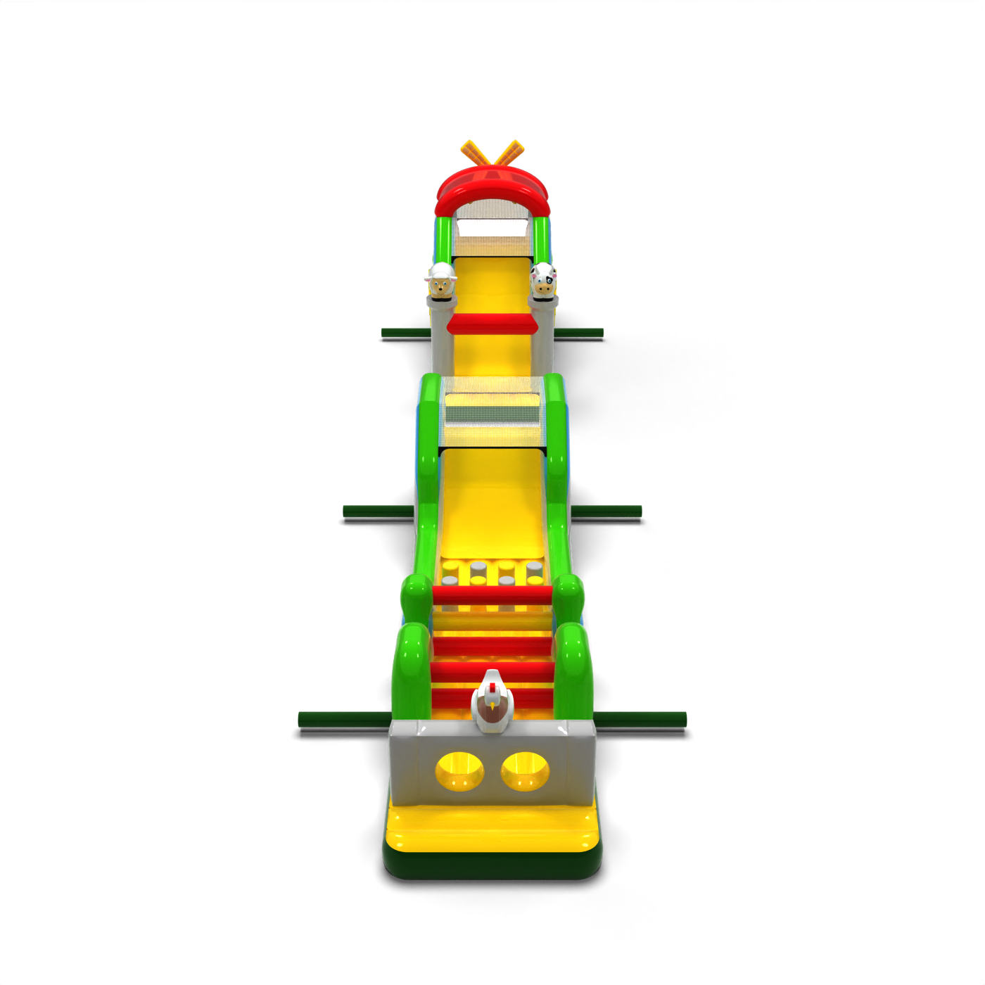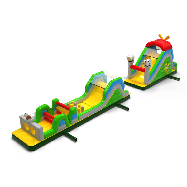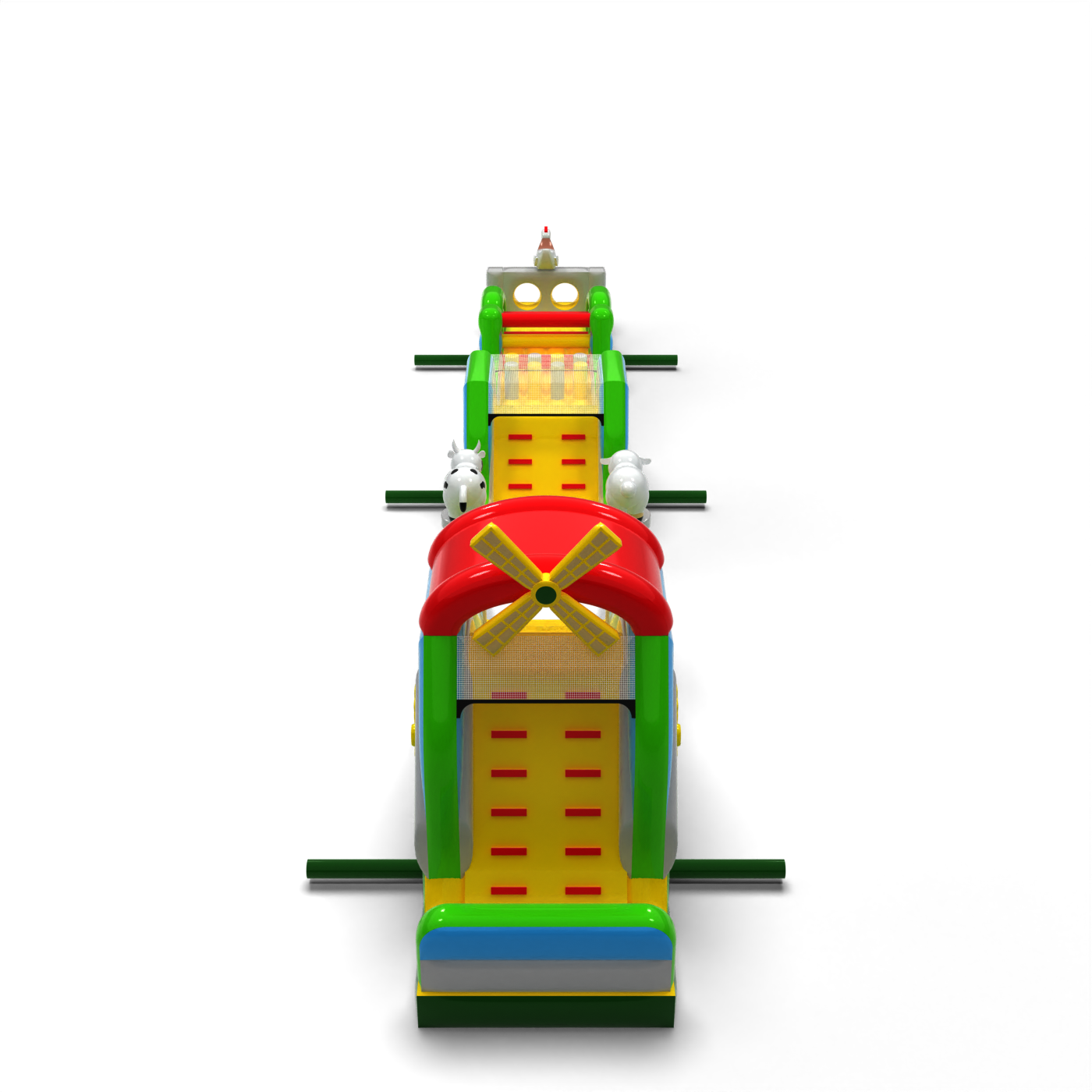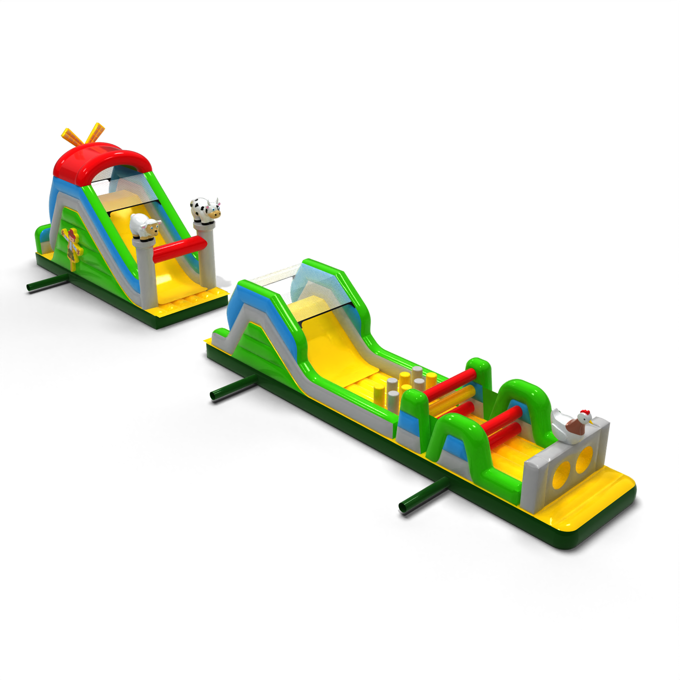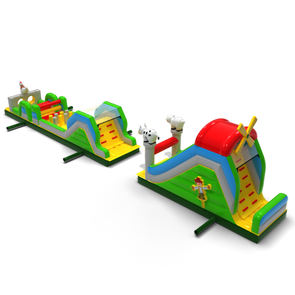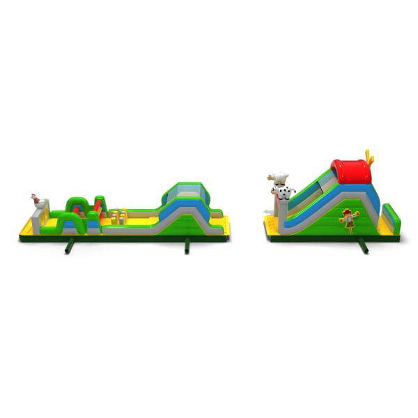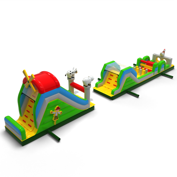 A 20 m hosszú, felfújható akadálypálya a farmerek témájában a szemet gyönyörködtető bármely szabadtéri rendezvényen. Vidéki hangsúlyai, tartós anyagai és könnyű szállíthatósága miatt kiváló választás fesztiválokra és piknikekre.