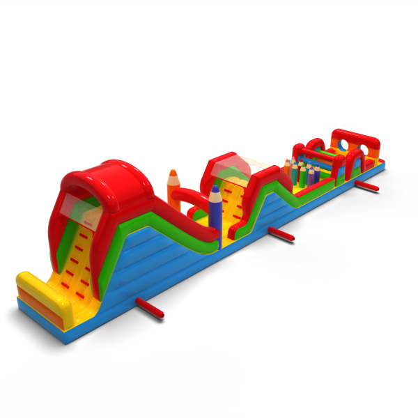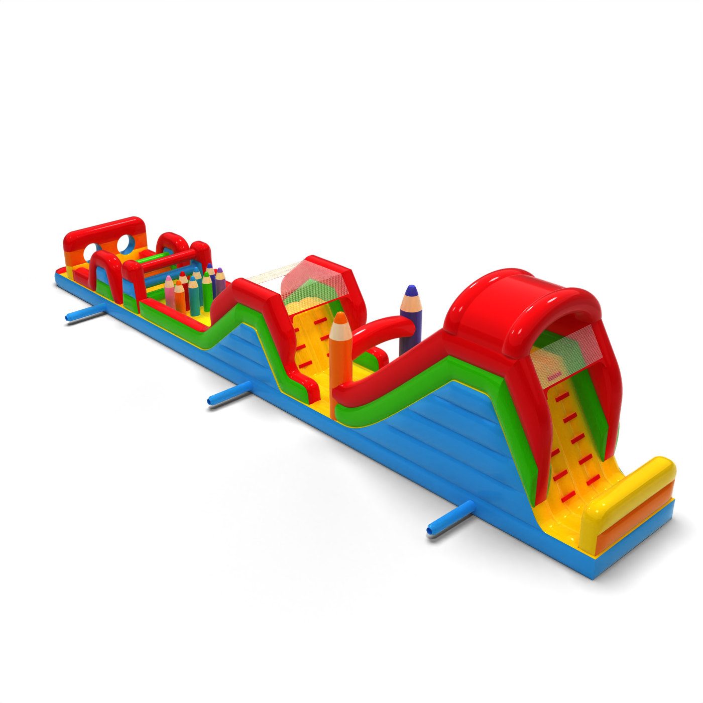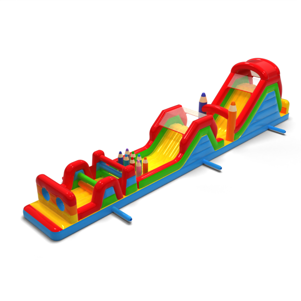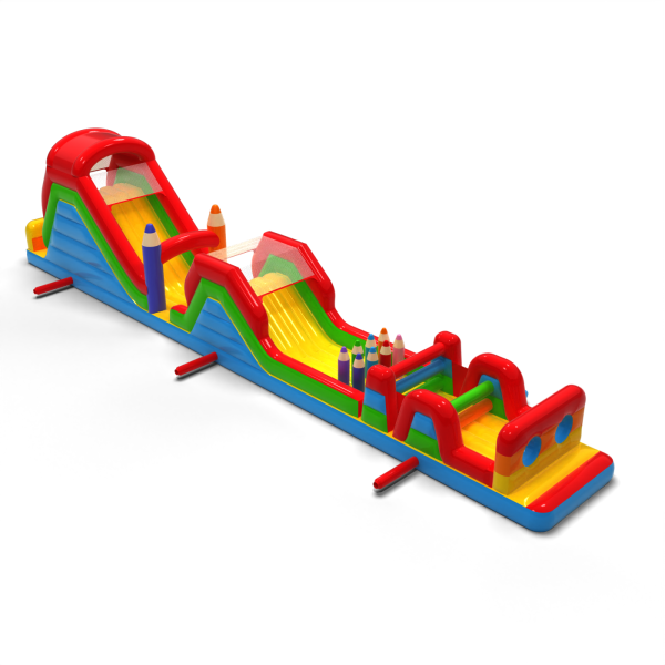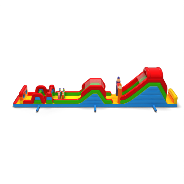 A Crayons akadálypálya - 20 m - egy színes attrakció, amely a színes zsírkréták által inspirált kreatív kialakítással hívja fel magára a figyelmet. A pálya ideális szabadtéri rendezvényekre, fesztiválokra vagy családi összejövetelekre, és rengeteg kihívást és szórakozást kínál minden korosztály számára. Tökéletes választás azok számára, akik versenyzéssel kombinált szórakozást keresnek egyedi, szórakoztató stílusban.
