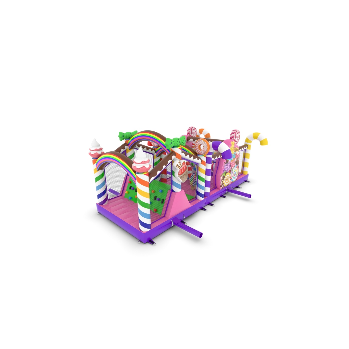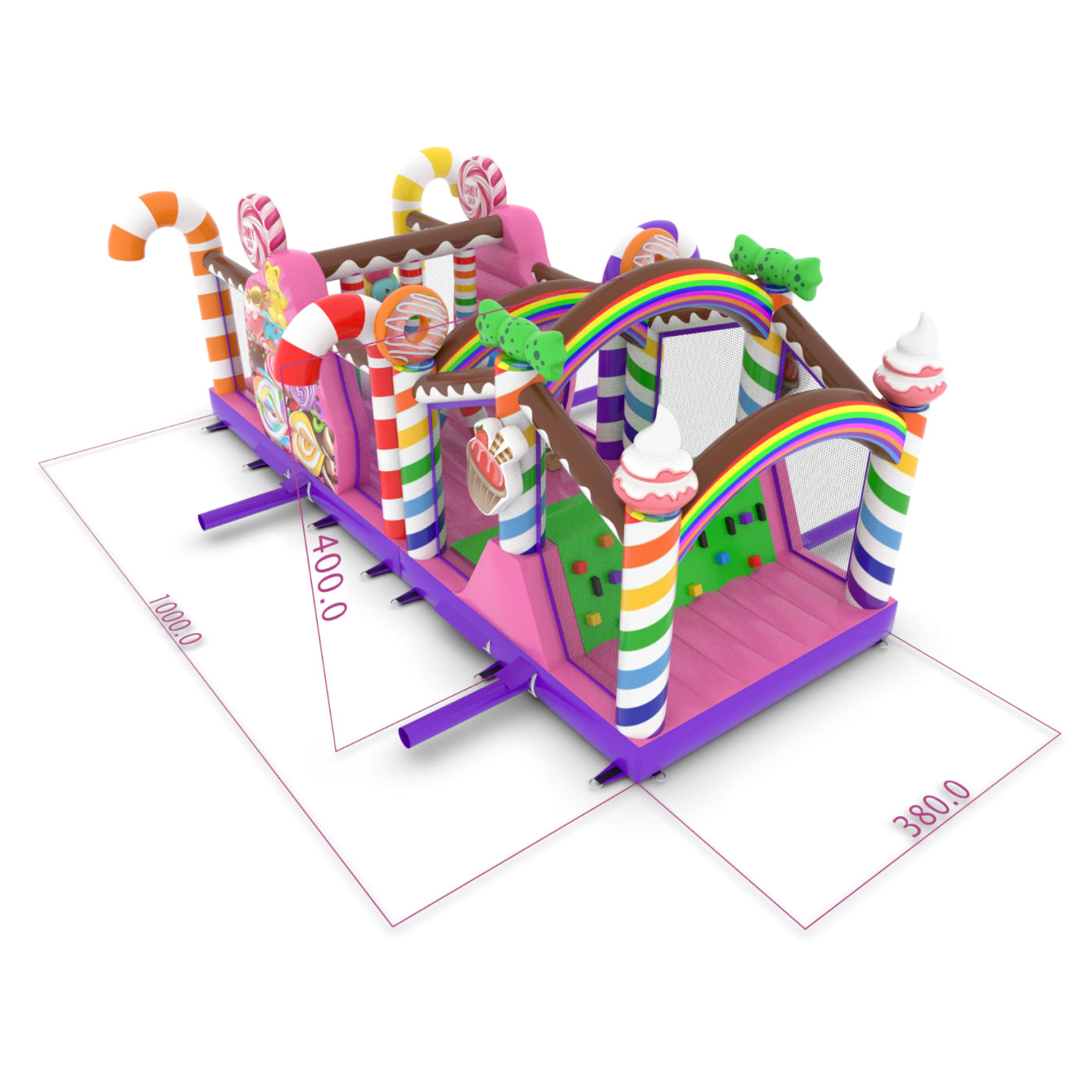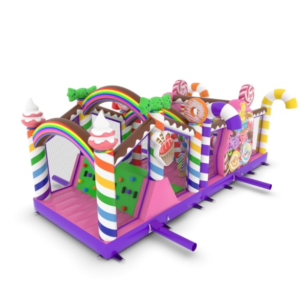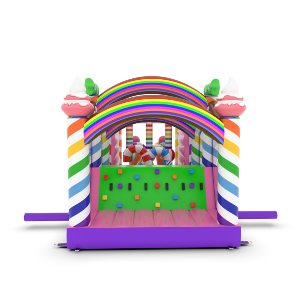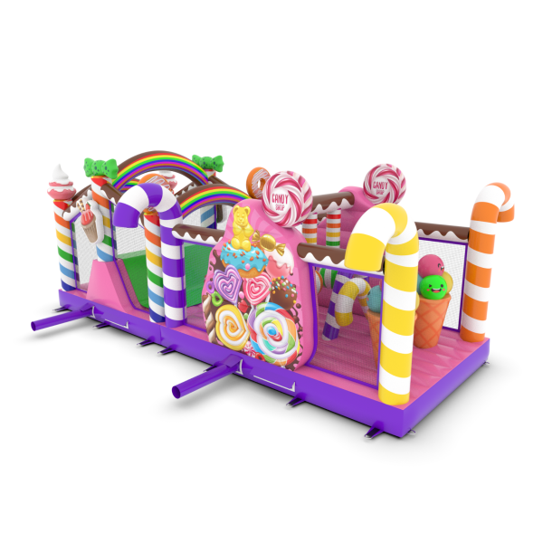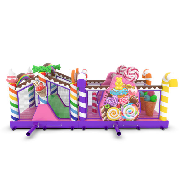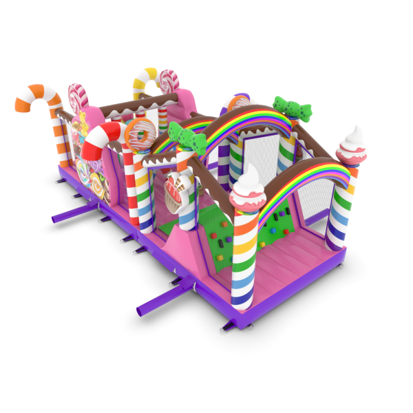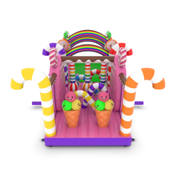 A felfújható, cukorkás témájú akadálypálya egyedülálló attrakció, amely színes és édes kialakításával elvarázsolja a gyerekeket! A nyalókák, szivárványok és édességek vidámsággal teli mesebeli hangulatot teremtenek. A csúszdák és akadályok aktív és kreatív szórakozást nyújtanak minden alkalomra.