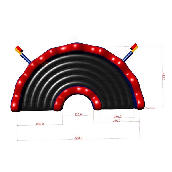 A felfújható akadálypálya csatlakozó - nyitott lehetővé teszi, hogy egy hosszabb, összefüggő pályát hozzon létre, két különálló pályát egyesítve egyetlen izgalmas attrakcióvá. Ez az elem új lehetőségeket biztosít a versenyzéshez és a szórakozáshoz, ideális fesztiválokra és szabadtéri rendezvényekre. Könnyű összeszerelhetőségének és tartós felépítésének köszönhetően a csatlakozó minden körülmények között tökéletes.