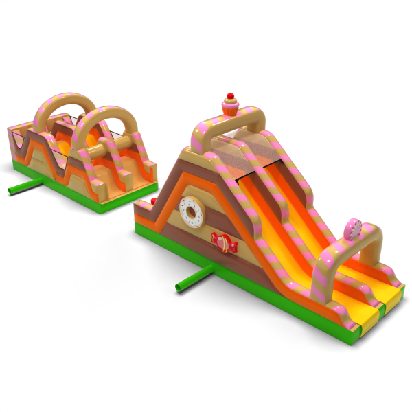Lepje meg vendégeit egy felfújható, 15 m hosszú, cukorkás témájú akadálypályával! Ez a színes attrakció tökéletes születésnapi partikra, ünnepségekre és családi piknikekre. Az egyszerű összeszerelés és szállítás megkönnyíti a rendezvény megszervezését.