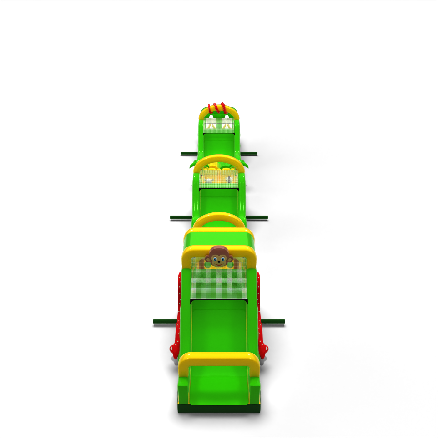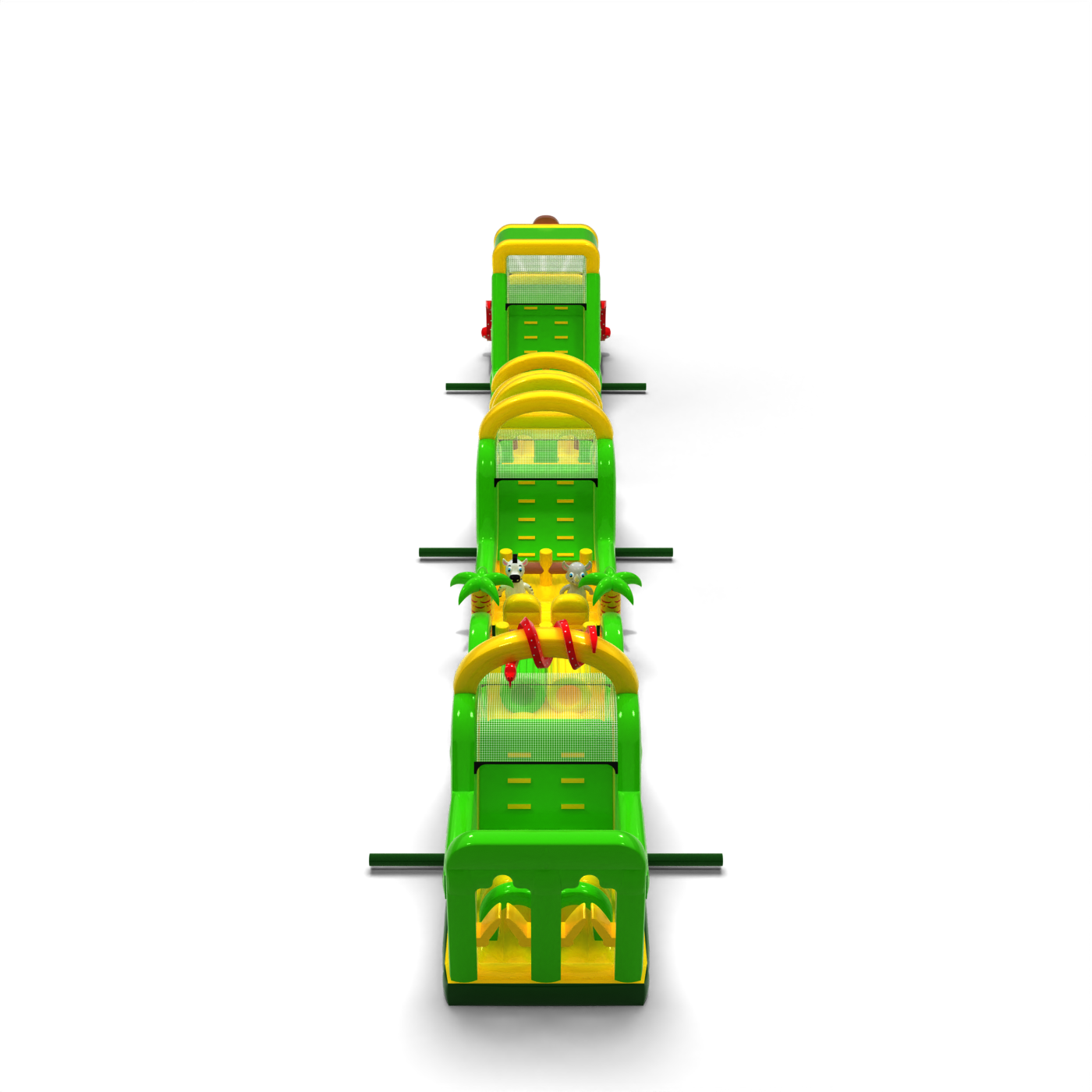 Nagy kiterjedésű, 3 szegmensből álló pálya, amely ideális nagy szabadtéri rendezvényekhez. A 30 méteres hosszával, intenzív színeivel és trópusi díszítéseivel egyedülálló hangulatot teremt, amely növeli a teljes felfújható terület presztízsét. Nagy kapacitásának és sokoldalúságának köszönhetően a pályát gyakran választják a rendezvényügynökségek és a vidámparkok tulajdonosai.
