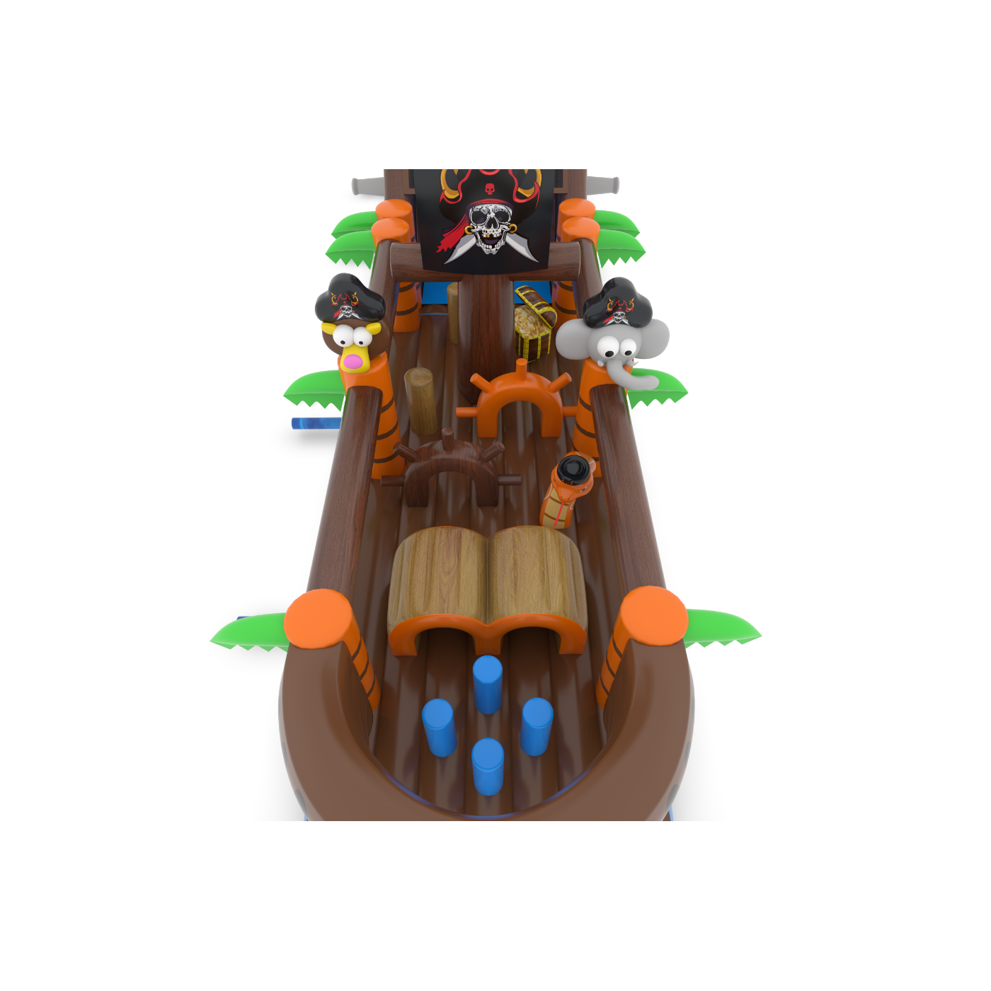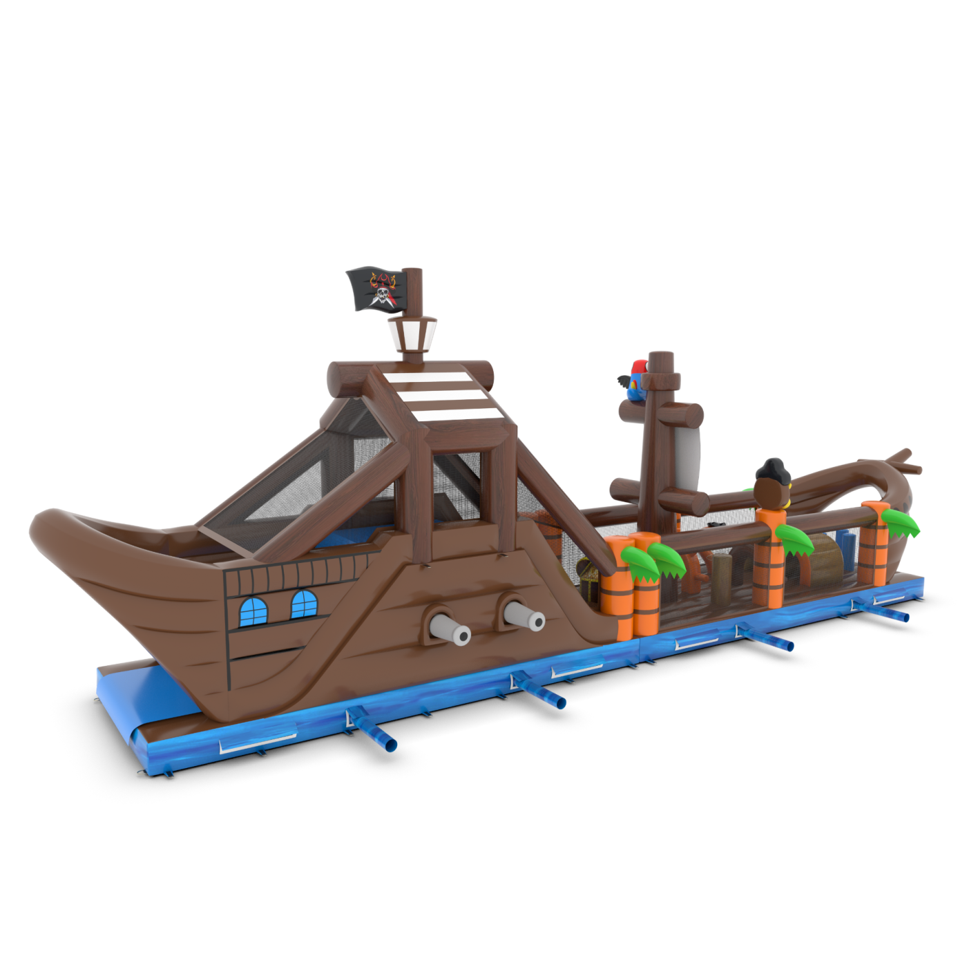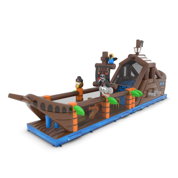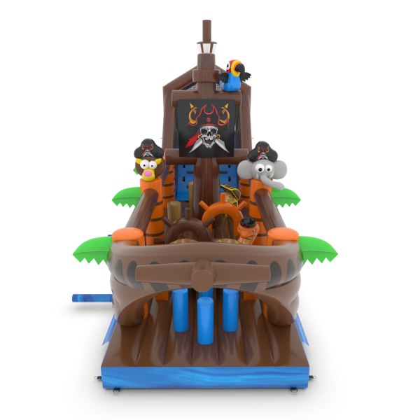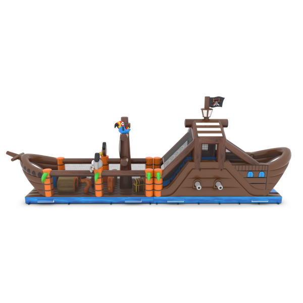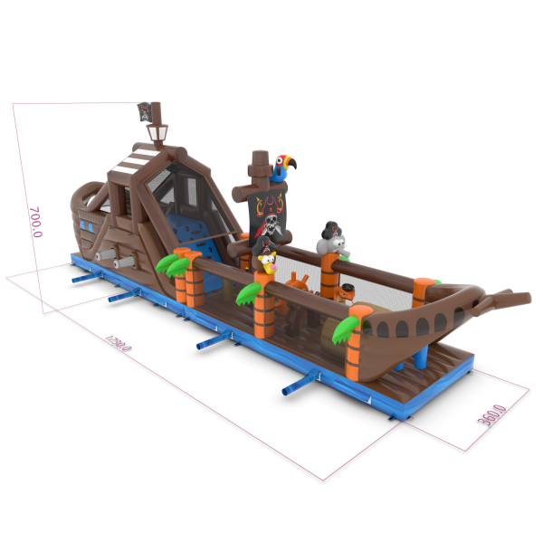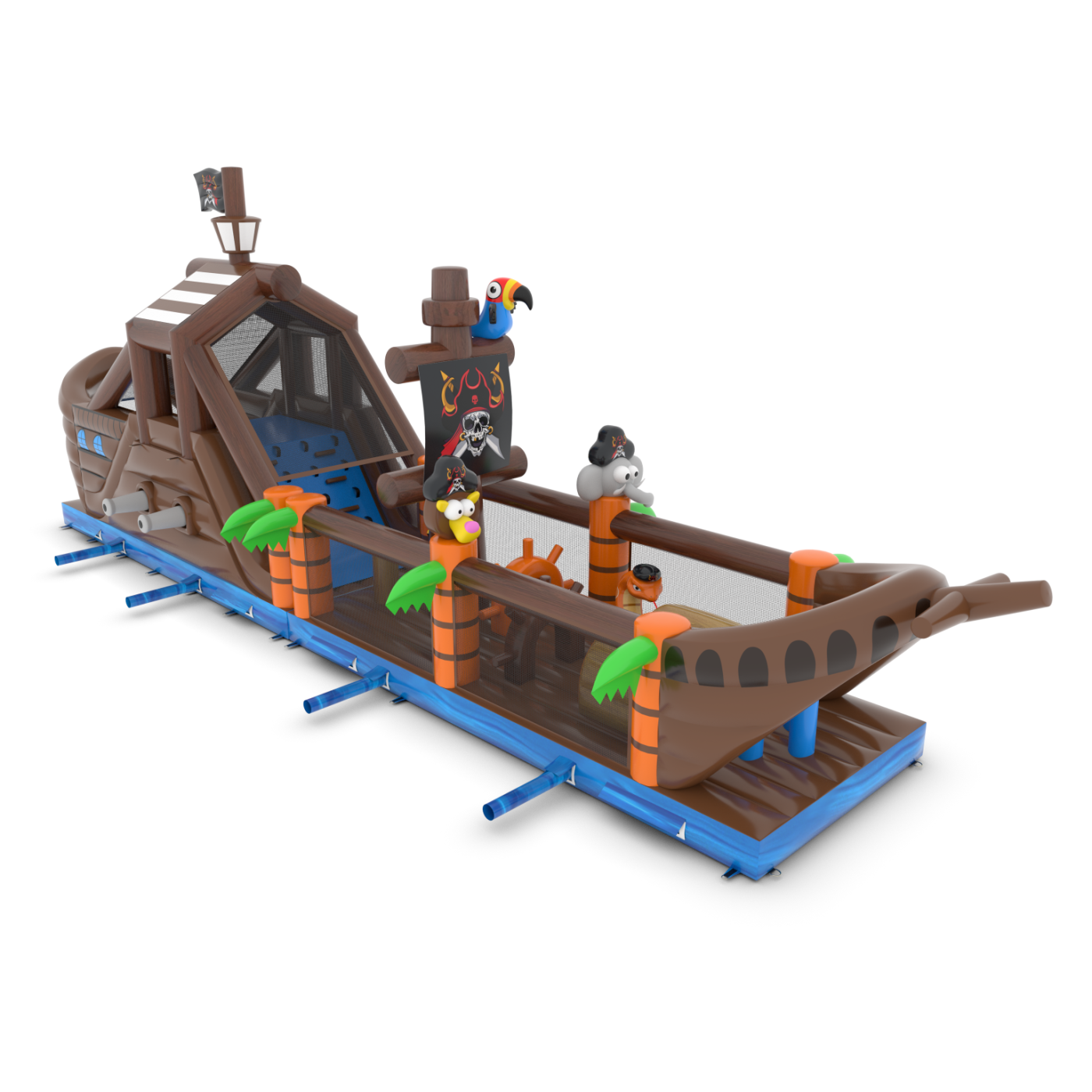 A kalózhajó formájú felfújható akadálypálya igazi csemege a kis kalandoroknak! A vitorlák, papagájok és pálmafák egy tengeri utazás valósághű hangulatát idézik, a számos akadály pedig felejthetetlen szórakozást biztosít. Kiváló választás fesztiválokra, tematikus rendezvényekre és piknikekre.