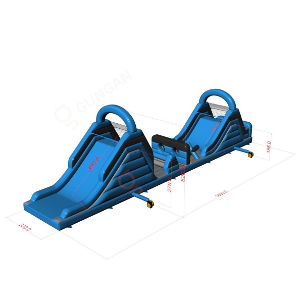 A felfújható akadálypályák tépőzárak segítségével összekapcsolhatók, így hosszú órákon át tartó szórakozást és izgalmat nyújtanak a résztvevőknek. Az ilyen típusú attrakciók kínálatunkban csúszdákat és további akadályokat is tartalmaznak, például mászófalakat. Emellett a felfújható akadálypályák bővíthetők olyan elemekkel is, mint a plafonból és a padlóból „kinövő” keresztlécek és oszlopok, amelyek megnehezítik az áthaladást és lassítják a versenyzőket. Ez az attrakció kiváló helyszíne lehet az egészséges és érdekes versengésnek. Az ilyen típusú játék sok örömöt és pozitív energiát ad mindenkinek.
