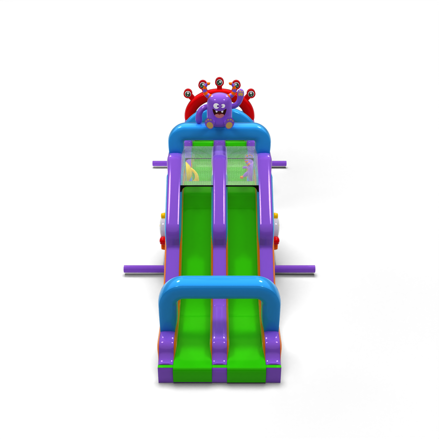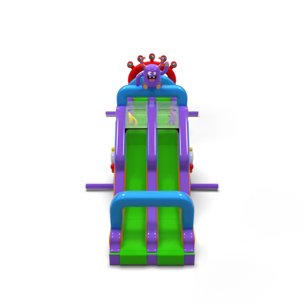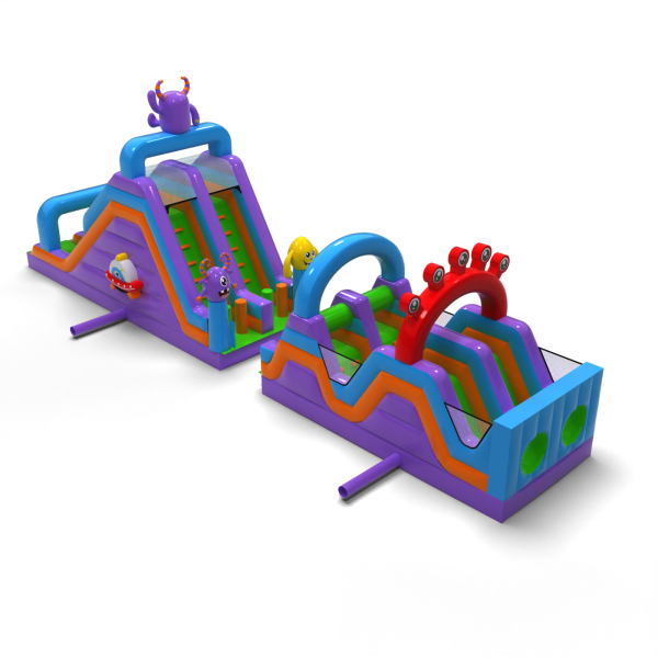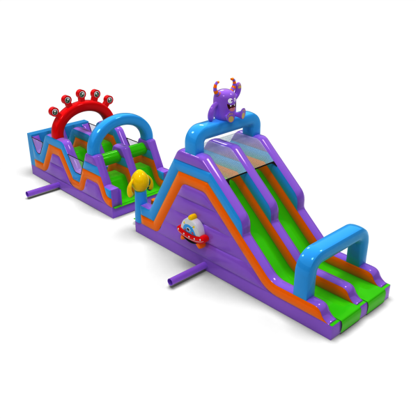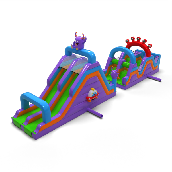 A Felfújható akadálypálya szörny témában - 15m szinte mindenkinek szól, aki szereti a szórakozást és a versengéssel járó kihívásokat. Az akadálypályát elsősorban fiataloknak és felnőtteknek terveztük, de 6 éves kortól a gyerekek számára is alkalmas. Ez az attrakció szinte minden résztvevő számára tartogat olyan elemeket, amelyek örömet okoznak a játék során. Ezt a terméket mindazoknak ajánljuk, akik szeretnék újra felfedezni magukban a versenyszellemet egy hosszú, szabadtéri szórakozással teli nap során. Az ilyen típusú attrakciók több, különböző nehézségi szintű akadályt is tartalmazhatnak. Falra mászás, gyors csúszás, majd kúszás az útvonalat nehezítő kiálló elemek között – ezek mind kihívást jelentenek a lehető leggyorsabb célba éréshez.