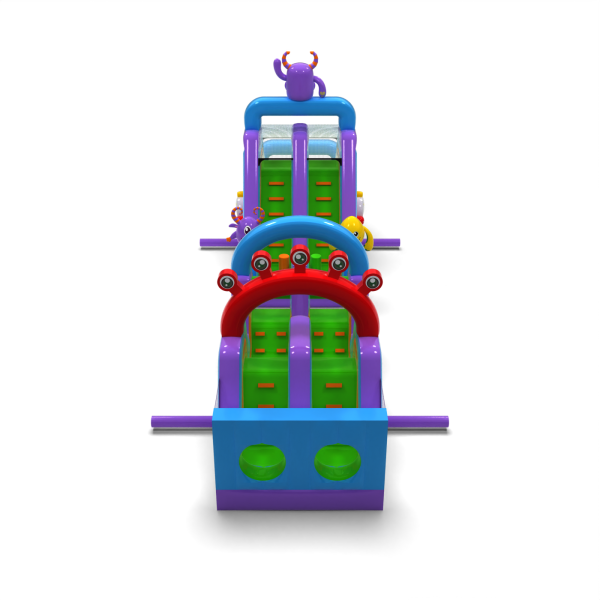 Ideális attrakció a gyermekrendezvények kínálatához - a 15 méteres, színes szörnyekkel díszített pálya szemet gyönyörködtető, és gyors tempójú szórakozást biztosít verseny vagy szabadon futó akadálypálya formájában. Könnyű és könnyen kezelhető, így alkalmi bérléshez és állandó parki létesítményekhez egyaránt jól használható.