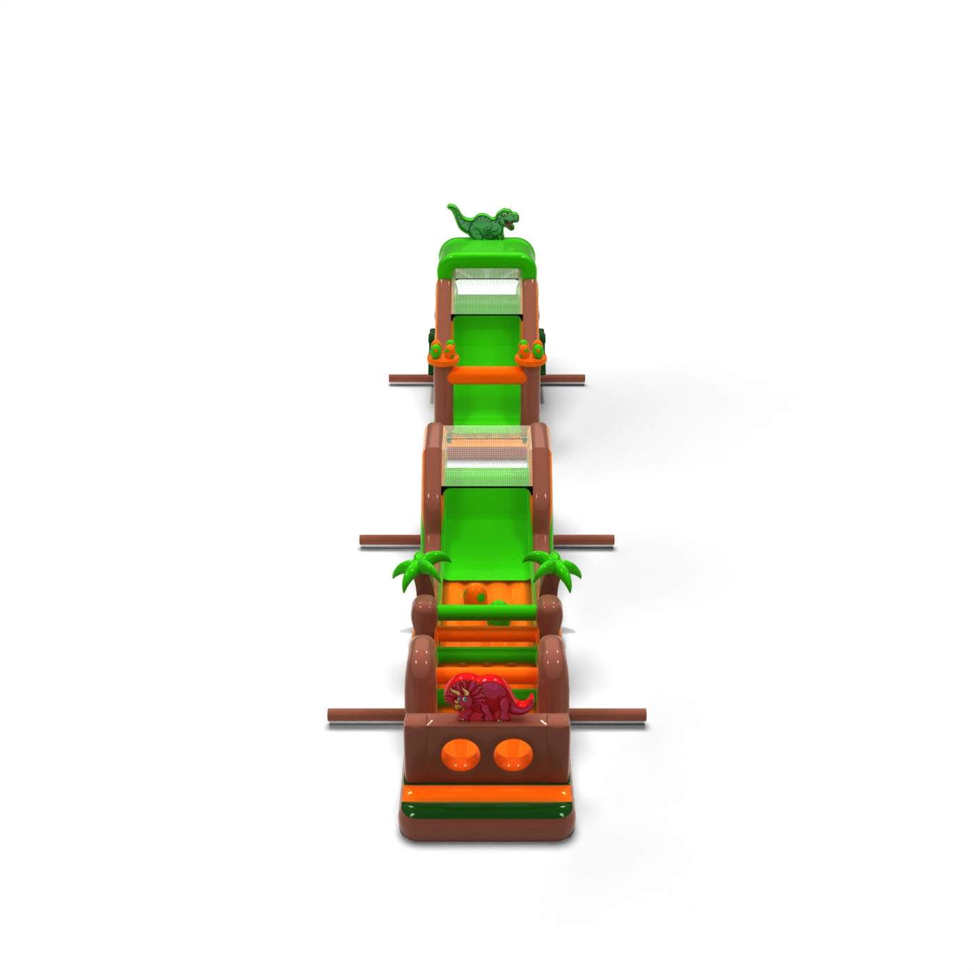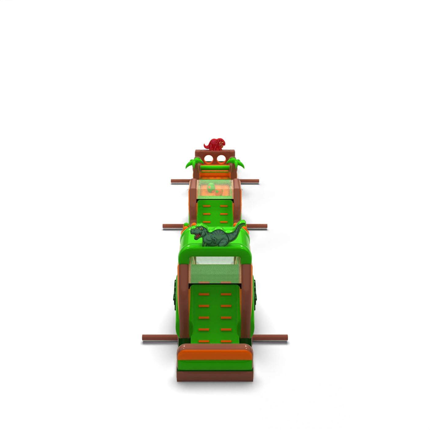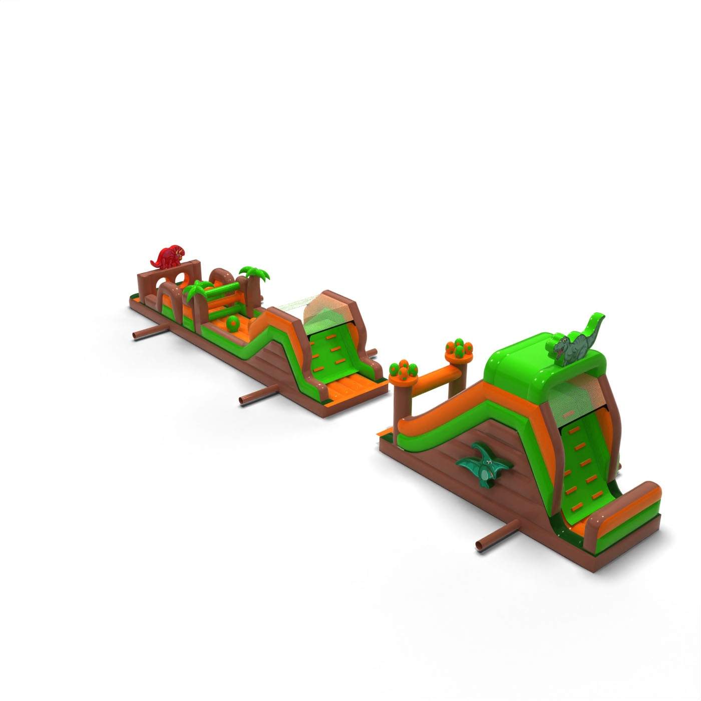 A jura hangulat és a pálya hossza azonnal látványossá teszi ezt az attrakciót, és erős érzelmeket vált ki. A kiterjedt akadálypálya dinamikus szórakozást, jó kapacitást és zökkenőmentes mozgást biztosít még nagy terhelés esetén is. A szerkezetet intenzív bérleti használatra tervezték, stabilitást és tartósságot nyújtva gyakori igénybevétel mellett. Univerzális dinoszaurusz-témája miatt a pálya népszerű, és a rendezvénykínálat bevált eleme. Kiváló választás Jurassic tematikus zónákhoz, nagy piknikekhez és városi rendezvényekhez, ahol fontos, hogy rövid idő alatt sok embert lenyűgözzön és kiszolgáljon.