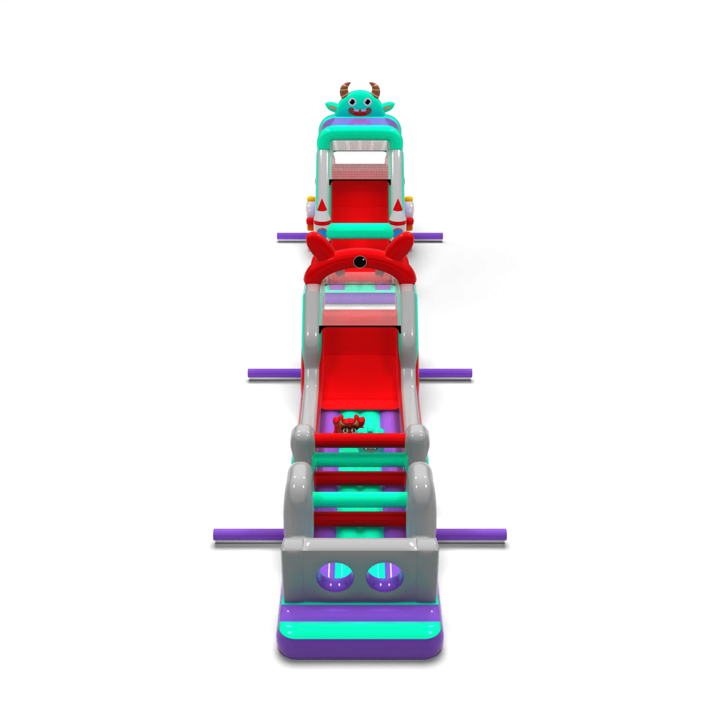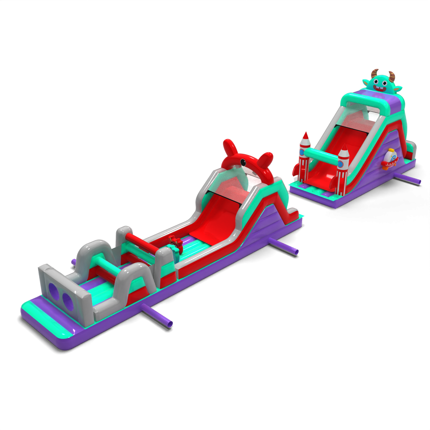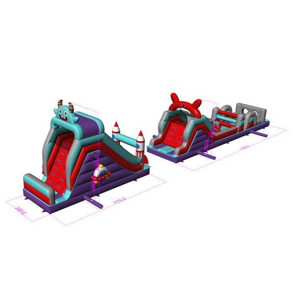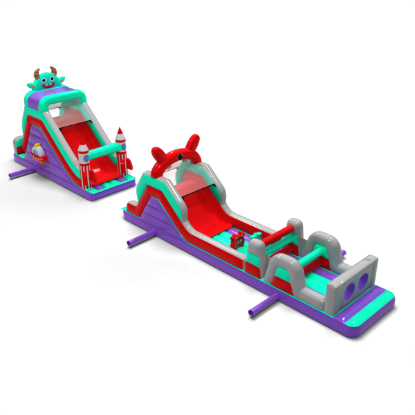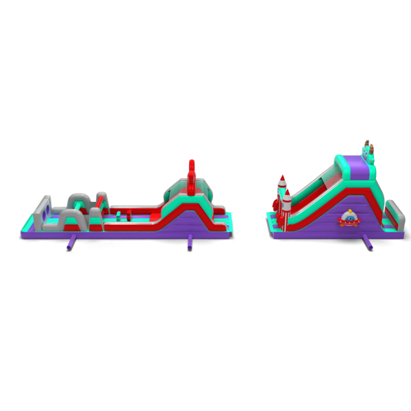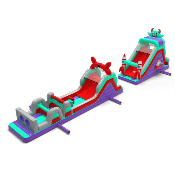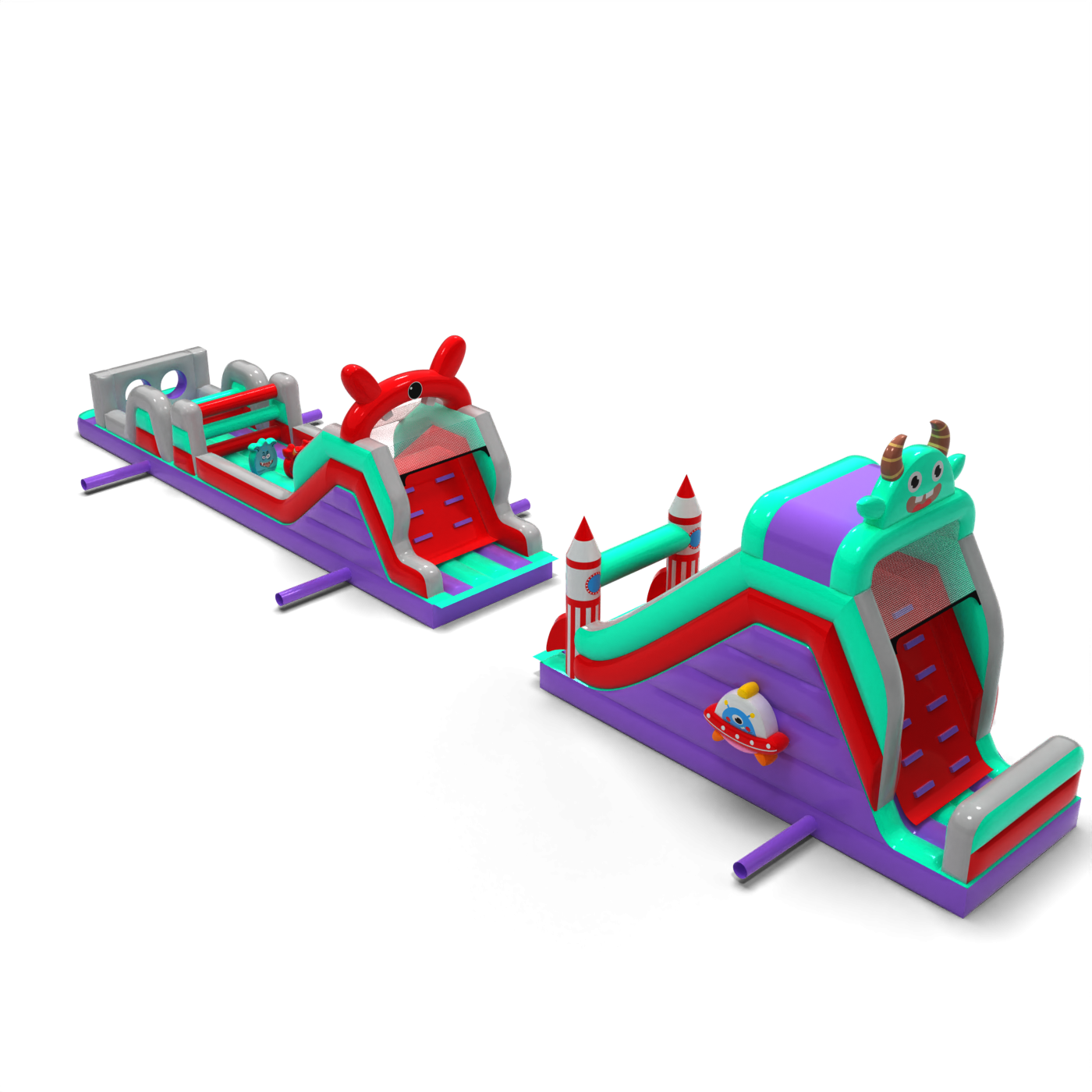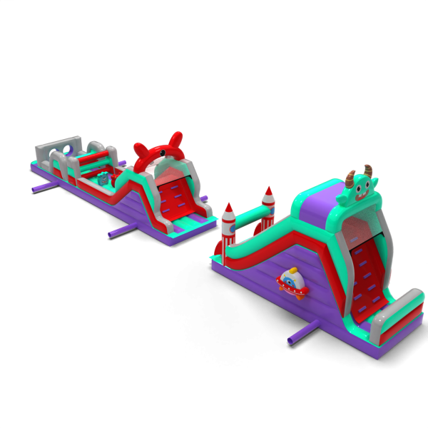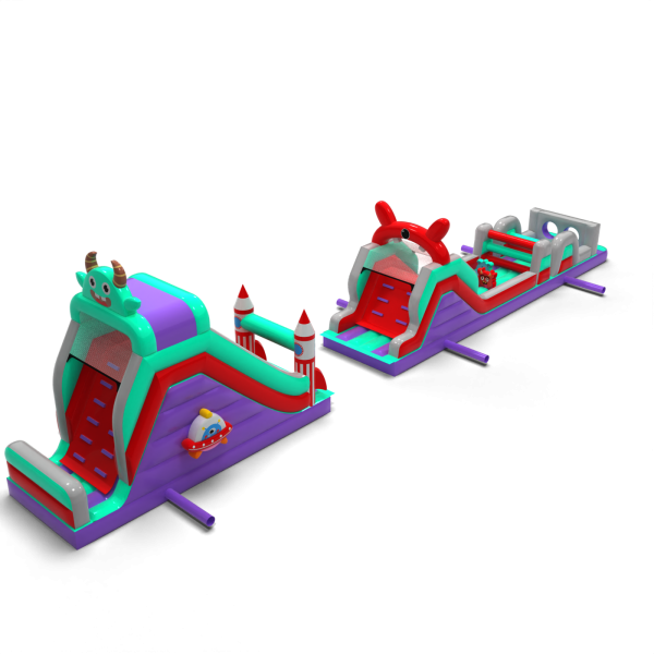 A 20 méteres, űrszerű akadálypálya kiegyensúlyozott attrakció, amely számos rendezvényen használható. Három fő szegmensből áll, köztük egy dupla csúszdaszakaszból és egy akadályokon átvezető szakaszból. Hosszabb hosszának köszönhetően hosszabb átkelési útvonalat biztosít, így a gyerekek hosszabb ideig játszhatnak anélkül, hogy gyakran kellene forogniuk. A grafikai téma következetes és barátságos esztétikával marad meg.