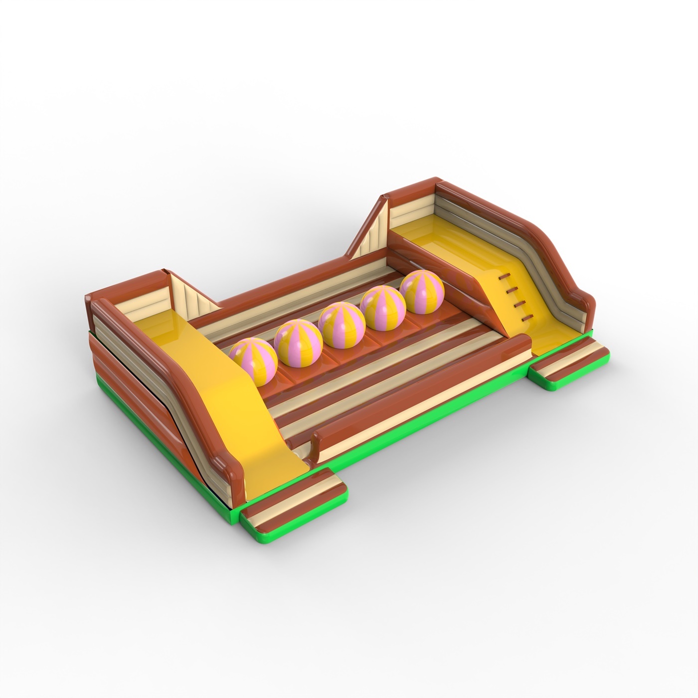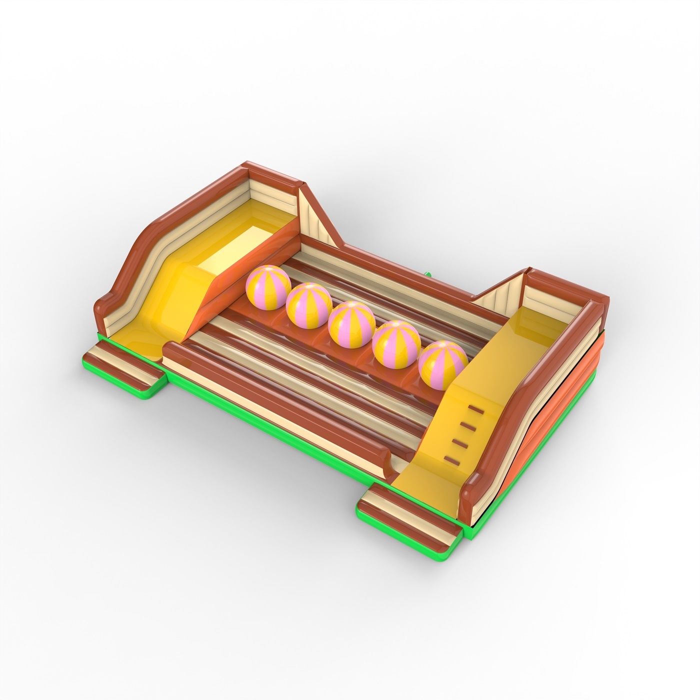 A cukorkás témájú Wipeout felfújható, színes és szórakoztató attrakció, amely minden korosztály figyelmét leköti. Fusson át az óriási felfújható labdákon anélkül, hogy elveszítené az egyensúlyát, és élvezze az egészséges szabadtéri versenyt. Ideális választás szabadtéri rendezvényekre, fesztiválokra és családi összejövetelekre, ahol az édes környezet felejthetetlen élményt nyújt.