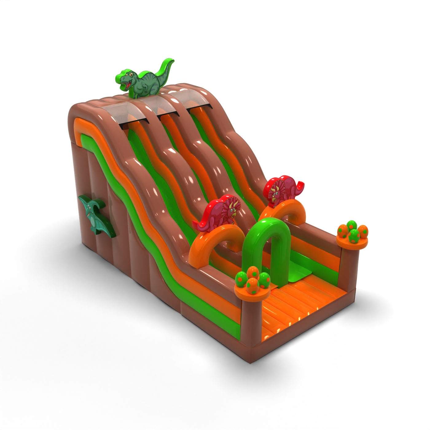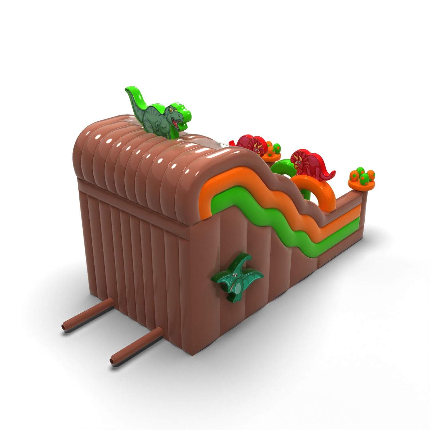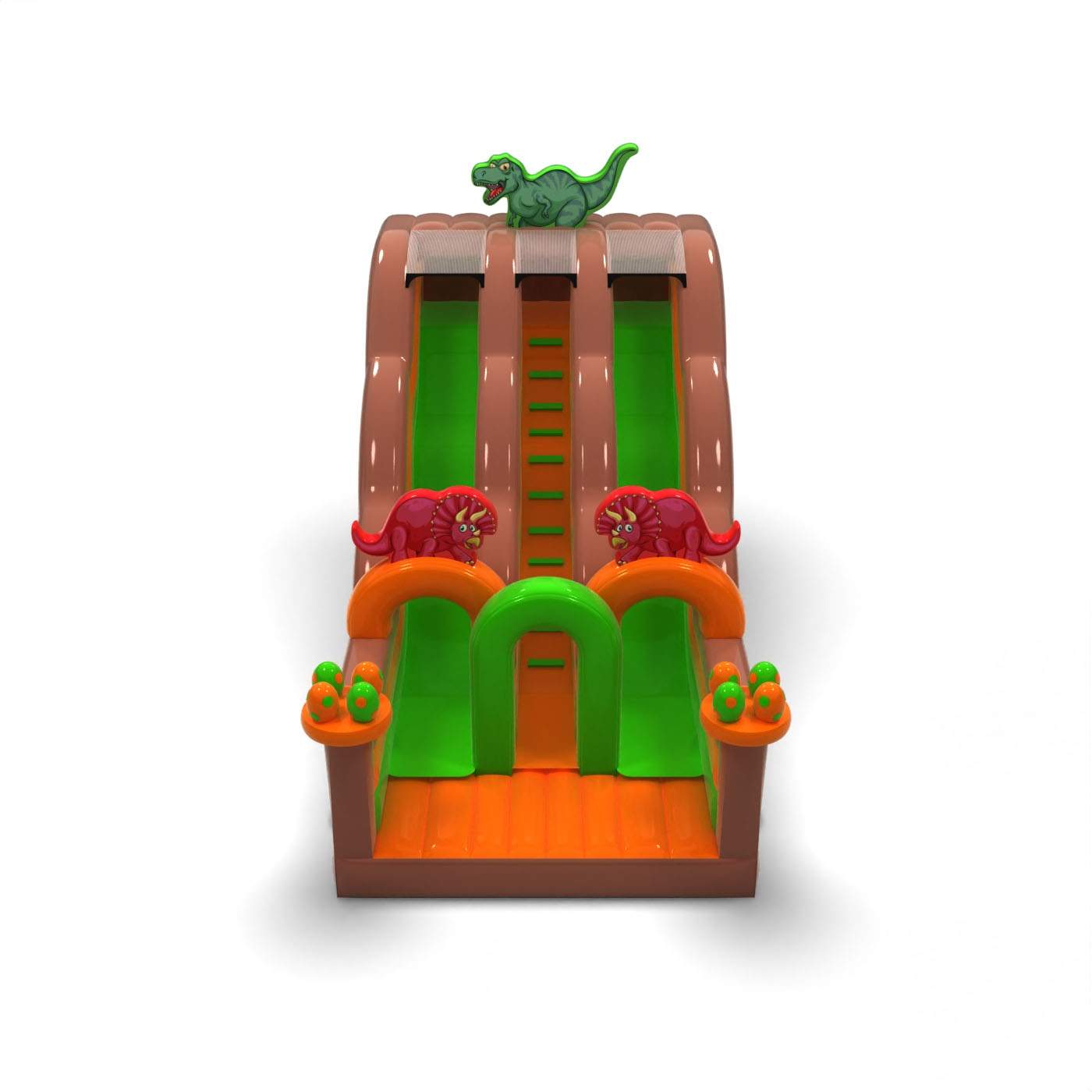 A Dupla csúszda dinoszaurusz motívummal egy fantasztikus felfújható játék gyerekeknek és fiataloknak. Kiválóan kombinálható más, különféle motívumú attrakcióinkkal. A Dupla csúszda dinoszaurusz motívummal már távolról felkelti a gyerekek figyelmét – ahol csak megjelenik, azonnal népszerű lesz. A rendezvények legkisebb résztvevői imádják a vidám szórakozást, így ez a csúszda garantáltan az egyik legkedveltebb felfújható játék lehet kínálatodban. Az ebbe a kategóriába tartozó felfújható játékok látványosak, gyakran gazdagon díszítettek, és sok elemet tartalmaznak, amelyek ösztönzik a mozgásos játékot a szabadban.