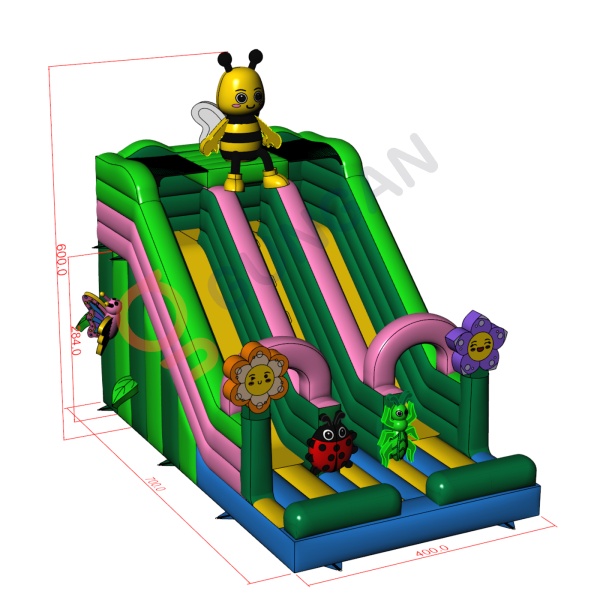 A virágtémájú, színekkel és imádnivaló rovarokkal teli felfújható játék nem csak látványosság, hanem tanulságos kaland is a gyermekek számára. Lengyelországban tervezték, így egyszerre biztosítja a biztonságot és a tartósságot, hogy a gyerekek szabadon játszhassanak és felfedezhessék. Ez a felfújható játék ideális a legkülönfélébb rendezvényekre, vonzza a figyelmet, és aktív természetélményre ösztönöz.
