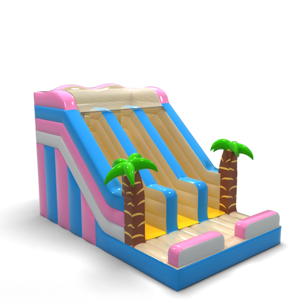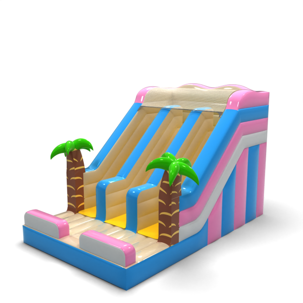 A hawaii témájú dupla felfújható mini csúszda egy csodálatos attrakció, amely minden gyermeket egy trópusi szigeten töltött egzotikus nyaralás hangulatába repít. A Hawaii strandjai, pálmafái és napsütötte éghajlata által inspirált egyedi kialakítással ez a csúszda bármelyik szabadtéri partin nagy sikert arat.