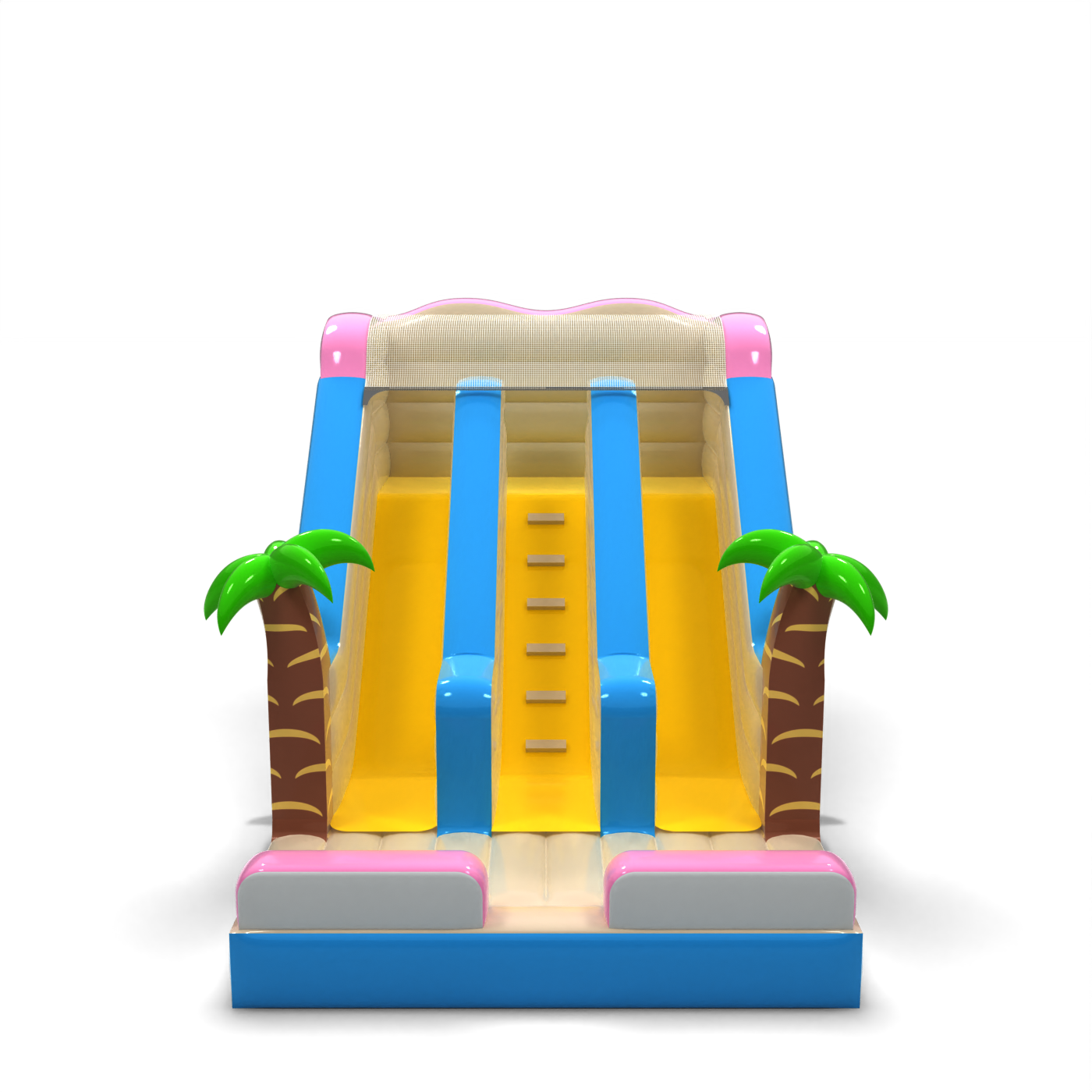 A Dupla felfújható csúszda hawaii témájú mini egy fantasztikus felfújható játék gyerekeknek és fiataloknak. Kiválóan kombinálható más, különféle motívumú attrakcióinkkal. A Dupla felfújható csúszda hawaii témájú mini már távolról felkelti a gyerekek figyelmét – ahol csak megjelenik, azonnal népszerű lesz. A rendezvények legkisebb résztvevői imádják a vidám szórakozást, így ez a csúszda garantáltan az egyik legkedveltebb felfújható játék lehet kínálatodban. Az ebbe a kategóriába tartozó felfújható játékok látványosak, gyakran gazdagon díszítettek, és sok elemet tartalmaznak, amelyek ösztönzik a mozgásos játékot a szabadban.