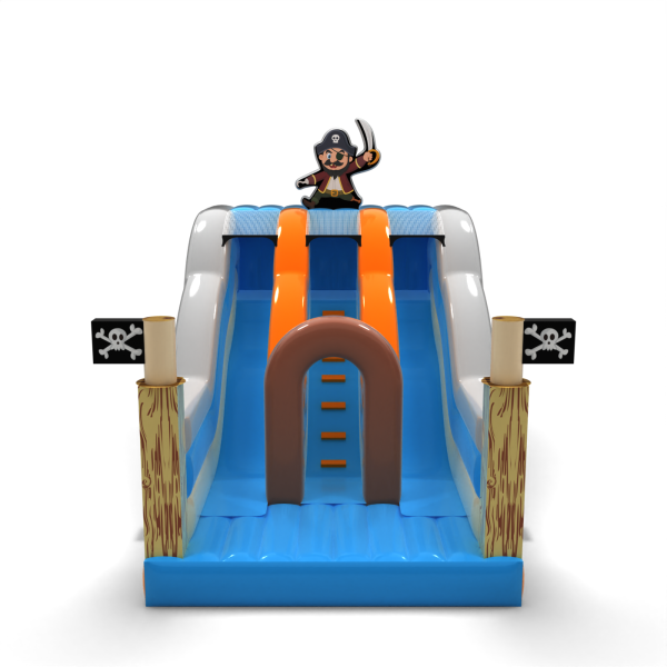 A dupla felfújható mini csúszda kalóz témában tökéletes attrakció minden kis felfedezőnek és kalandvágyónak! Ez a kalózhajó stílusú csúszda a kalózok, kincsek és tengeri utazások izgalmas világába repíti a gyerekeket. Bármilyen alkalomról legyen is szó - születésnapi buli, fesztivál vagy családi piknik - a kalóz témájú csúszda rengeteg szórakozást és élvezetet nyújt.