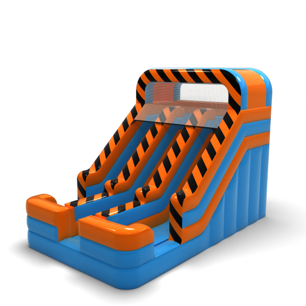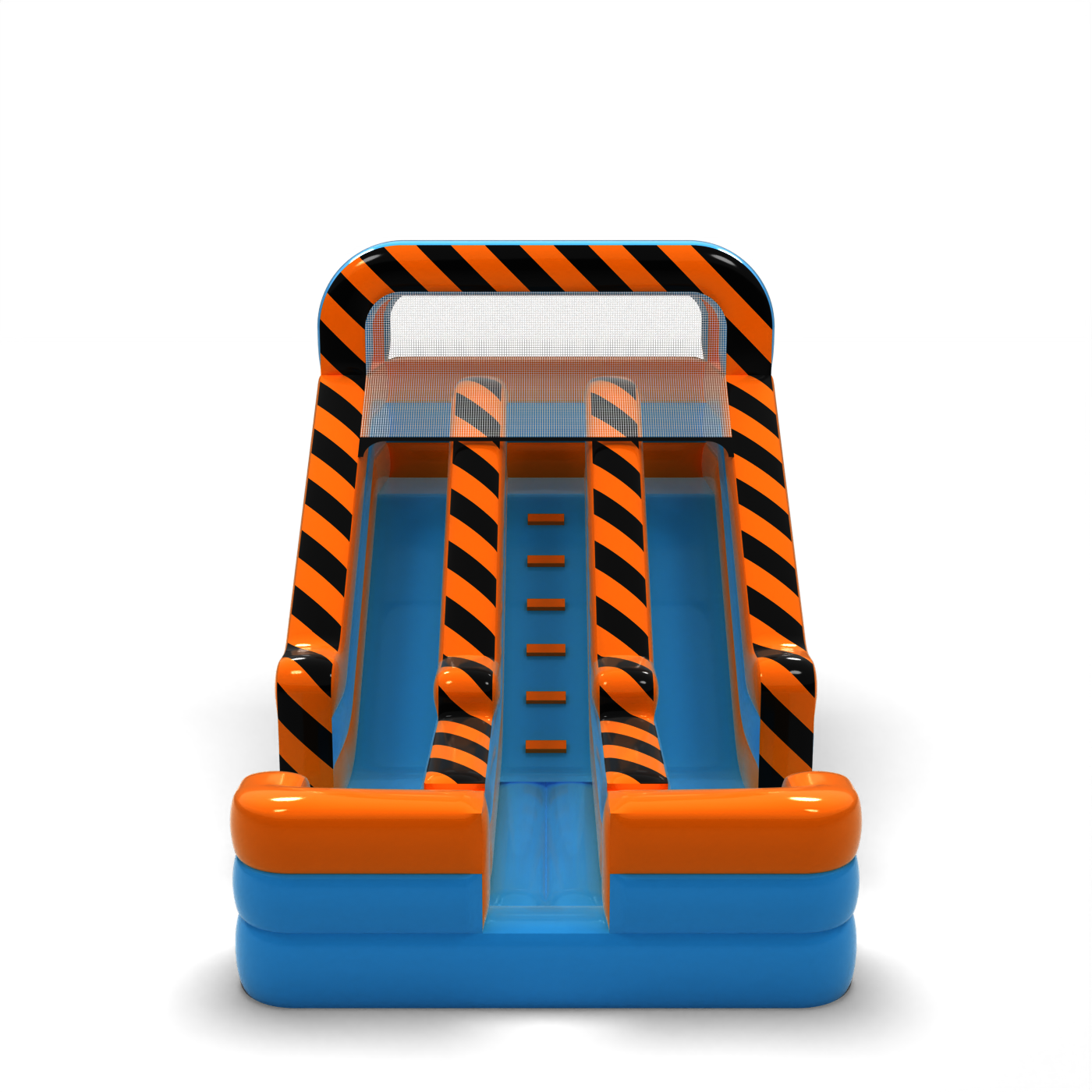 Mint minden felfújható attrakciónk, ez a termék is kiváló minőségű anyagokból készült – jelen esetben nagy szakítószilárdságú, új generációs PVC-ből. Ez a Dupla felfújható csúszda klasszikus mini témában 6 m x 3,6 m x 3,8 m méretű (hosszúság, szélesség és magasság). Megfelel a EN 14960 európai szabványnak, amely a felfújható szórakoztató eszközök biztonságára vonatkozik. Az attrakció működtetéséhez ajánlott fúvókat a csomag tartalmazza. Ahogyan attrakcióink többségére, erre a felfújható játékra is 2 év garanciát vállalunk. A Gangaru-nál gondoskodunk róla, hogy minél kevesebb dolgod legyen – a csomag tartalmazza az összes szükséges rögzítő tartozékot is (kötélzet, cövekek). A felfújható játékot független szakértő is bevizsgálta a biztonsági előírások szerint.