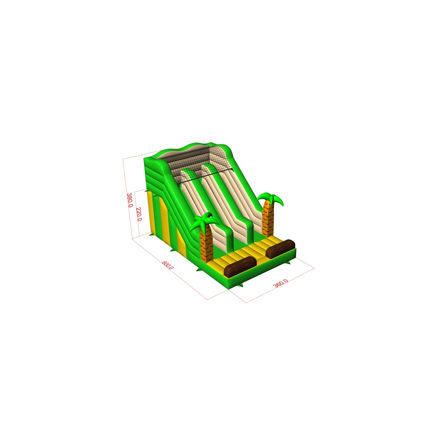 Egyedi terméket mutatunk be, amely egy zöld dupla csúszda pálmafákkal. Minden a dzsungel hangulatában van, amely megjelenésével sok-sok órányi szórakozásra "rabolja" szerelmeseit. Az ideális csúszda mindenkinek