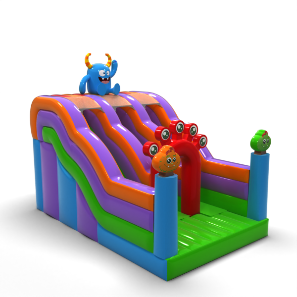 A dupla felfújható mini csúszda szörny témában egy színes és szórakoztató attrakció, amely minden gyermeknek tetszeni fog! A szimpatikus szörnyek, a vibráló színek és a szórakoztató esztétika miatt ez a csúszda tökéletes választás tematikus partikra, születésnapokra, ünnepségekre vagy családi piknikekre.