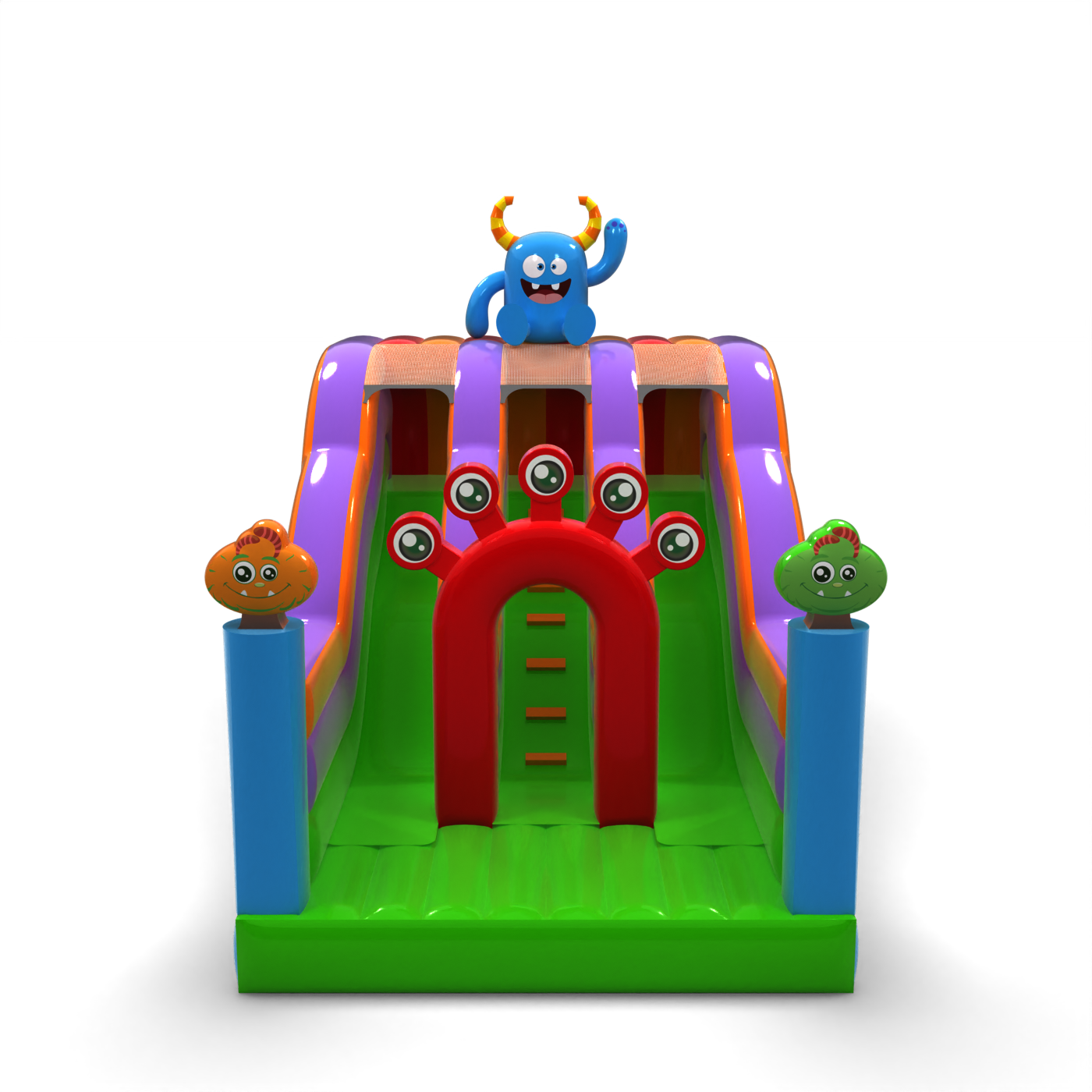 A Dupla felfújható csúszda mini szörny témában egy fantasztikus felfújható játék gyerekeknek és fiataloknak. Kiválóan kombinálható más, különféle motívumú attrakcióinkkal. A Dupla felfújható csúszda mini szörny témában már távolról felkelti a gyerekek figyelmét – ahol csak megjelenik, azonnal népszerű lesz. A rendezvények legkisebb résztvevői imádják a vidám szórakozást, így ez a csúszda garantáltan az egyik legkedveltebb felfújható játék lehet kínálatodban. Az ebbe a kategóriába tartozó felfújható játékok látványosak, gyakran gazdagon díszítettek, és sok elemet tartalmaznak, amelyek ösztönzik a mozgásos játékot a szabadban.