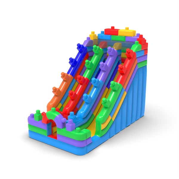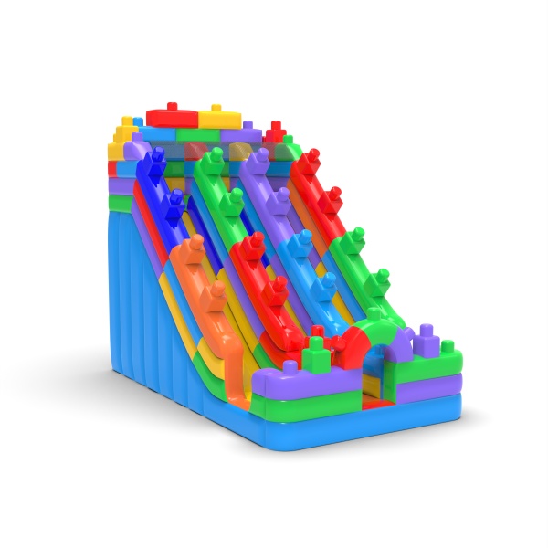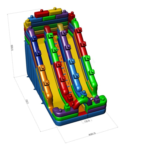 Biztosítson fantasztikus szórakozást a gyerekeknek a színes blokkokkal díszített dupla csúszdánkkal! Ez a színes és figyelemfelkeltő attrakció rengeteg izgalmat fog nyújtani a szabadtéri rendezvényeken. A masszív konstrukció és az élénk színek miatt ez a csúszda tökéletes választás fesztiválokra, születésnapokra vagy családi piknikekre.