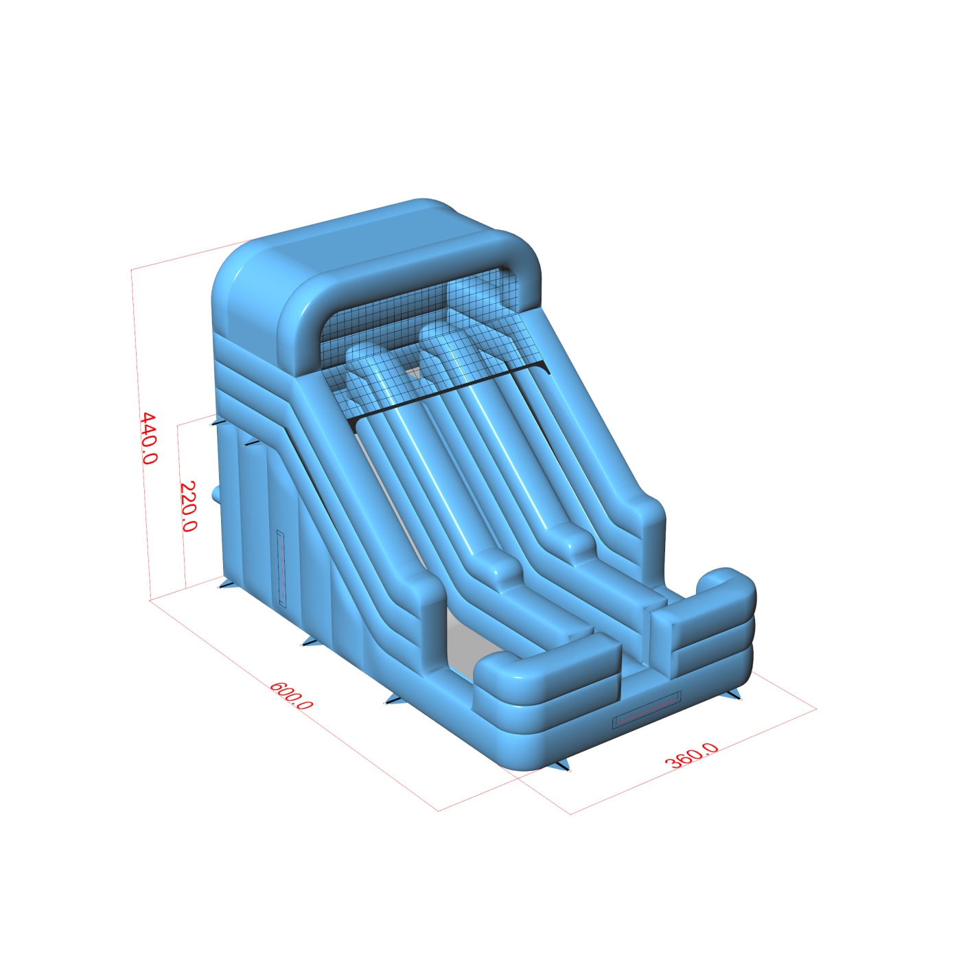 A Dupla felfújható mini csúszda - pasztellkék egy fantasztikus felfújható játék gyerekeknek és fiataloknak. Kiválóan kombinálható más, különféle motívumú attrakcióinkkal. A Dupla felfújható mini csúszda - pasztellkék már távolról felkelti a gyerekek figyelmét – ahol csak megjelenik, azonnal népszerű lesz. A rendezvények legkisebb résztvevői imádják a vidám szórakozást, így ez a csúszda garantáltan az egyik legkedveltebb felfújható játék lehet kínálatodban. Az ebbe a kategóriába tartozó felfújható játékok látványosak, gyakran gazdagon díszítettek, és sok elemet tartalmaznak, amelyek ösztönzik a mozgásos játékot a szabadban.