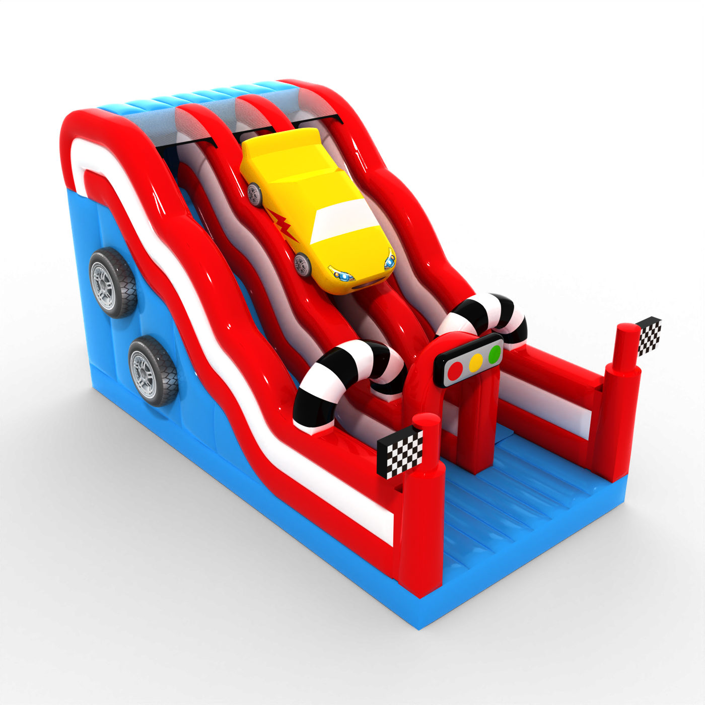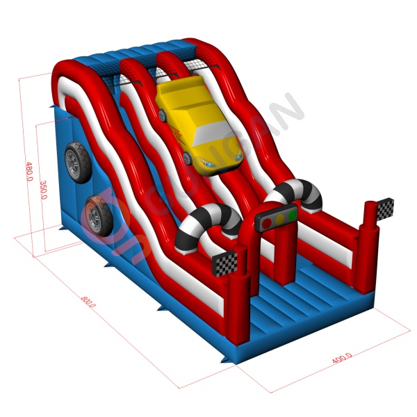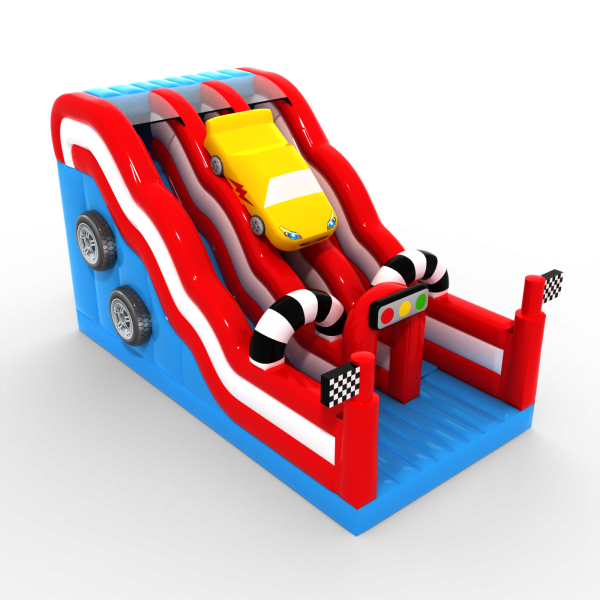 A Dupla nyitott csúszda autó motívummal egy fantasztikus felfújható játék gyerekeknek és fiataloknak. Kiválóan kombinálható más, különféle motívumú attrakcióinkkal. A Dupla nyitott csúszda autó motívummal már távolról felkelti a gyerekek figyelmét – ahol csak megjelenik, azonnal népszerű lesz. A rendezvények legkisebb résztvevői imádják a vidám szórakozást, így ez a csúszda garantáltan az egyik legkedveltebb felfújható játék lehet kínálatodban. Az ebbe a kategóriába tartozó felfújható játékok látványosak, gyakran gazdagon díszítettek, és sok elemet tartalmaznak, amelyek ösztönzik a mozgásos játékot a szabadban.