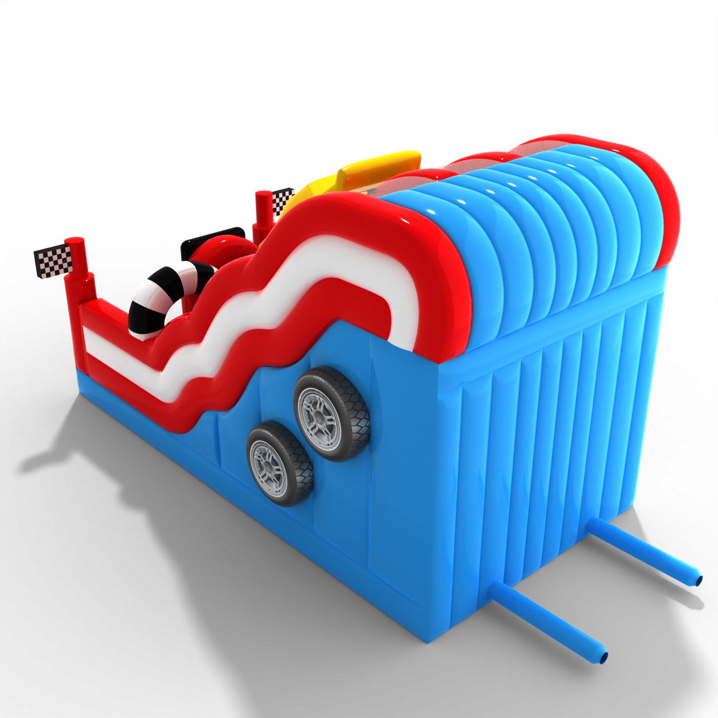 Fedezze fel a felfújható versenyautó témájú versenyautónkat, amely izgalmat és nagy sebességű szórakozást nyújt a gyerekeknek! Ez a Lengyelországban tervezett felfújható játék a tartós anyagok használatának köszönhetően a legmagasabb biztonsági előírásoknak megfelelően készült. A versenyzés világa által inspirált, színes autókkal és versenypályákkal díszített kialakítása vonzza a figyelmet és serkenti a gyermekek fantáziáját. Ideális befektetés azok számára, akik gazdagítani szeretnék kínálatukat a szórakoztatóiparban.