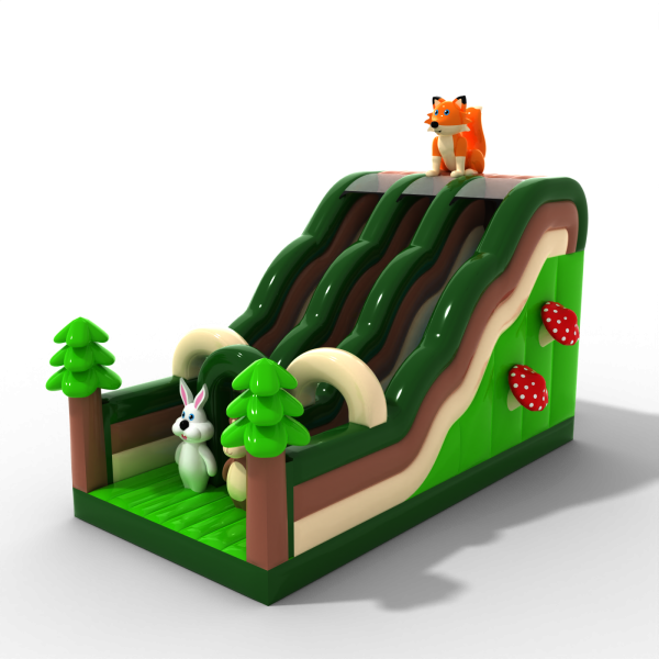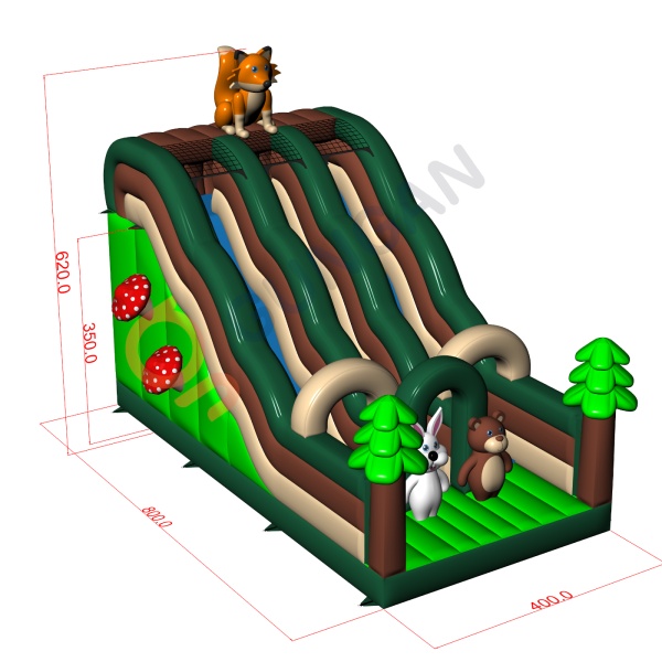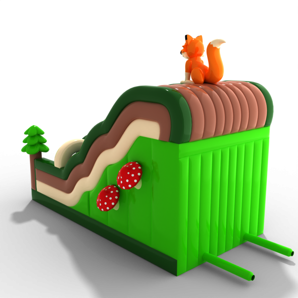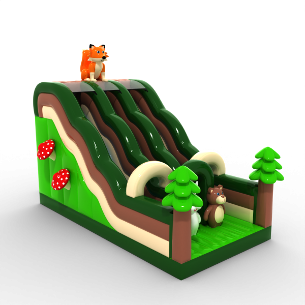 A Dupla nyitott csúszda erdei témával egy fantasztikus felfújható játék gyerekeknek és fiataloknak. Kiválóan kombinálható más, különféle motívumú attrakcióinkkal. A Dupla nyitott csúszda erdei témával már távolról felkelti a gyerekek figyelmét – ahol csak megjelenik, azonnal népszerű lesz. A rendezvények legkisebb résztvevői imádják a vidám szórakozást, így ez a csúszda garantáltan az egyik legkedveltebb felfújható játék lehet kínálatodban. Az ebbe a kategóriába tartozó felfújható játékok látványosak, gyakran gazdagon díszítettek, és sok elemet tartalmaznak, amelyek ösztönzik a mozgásos játékot a szabadban.