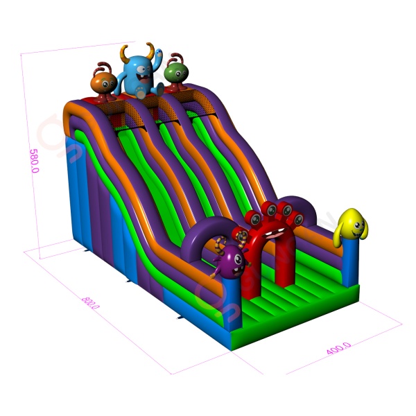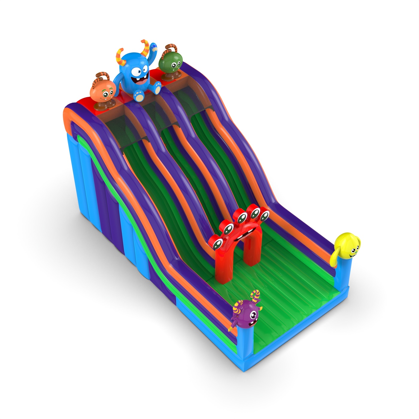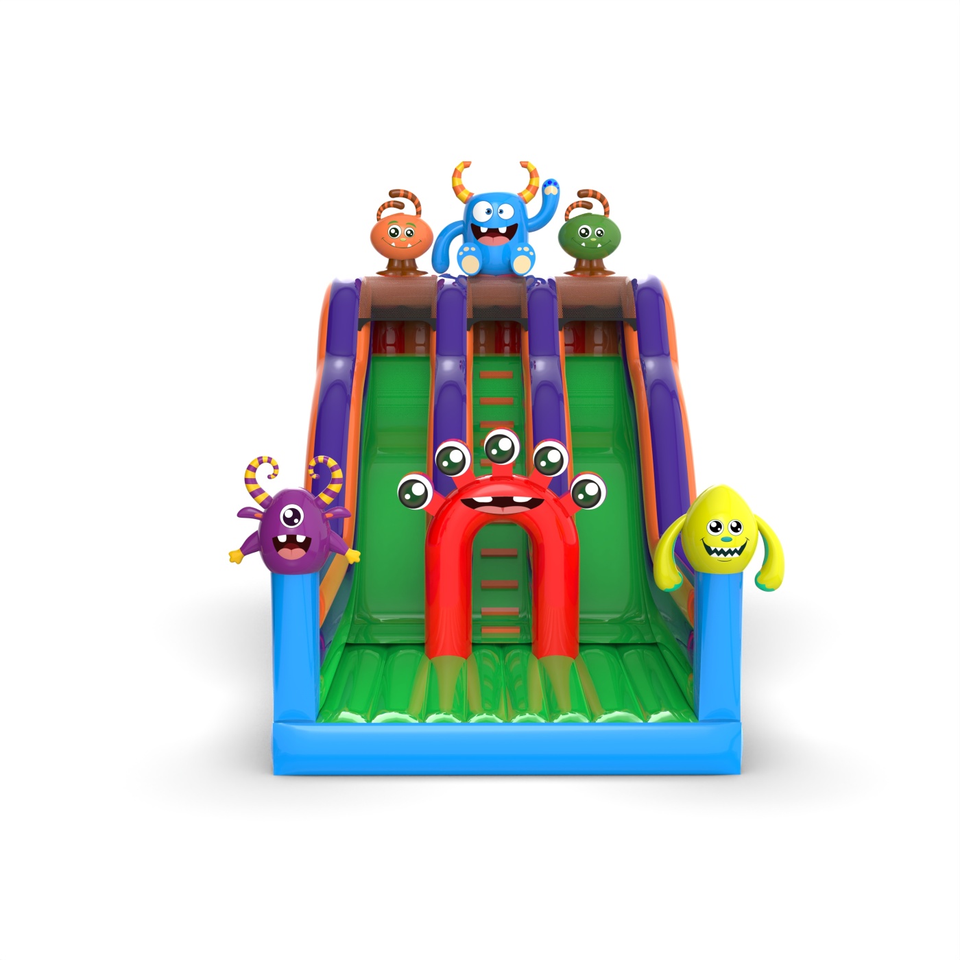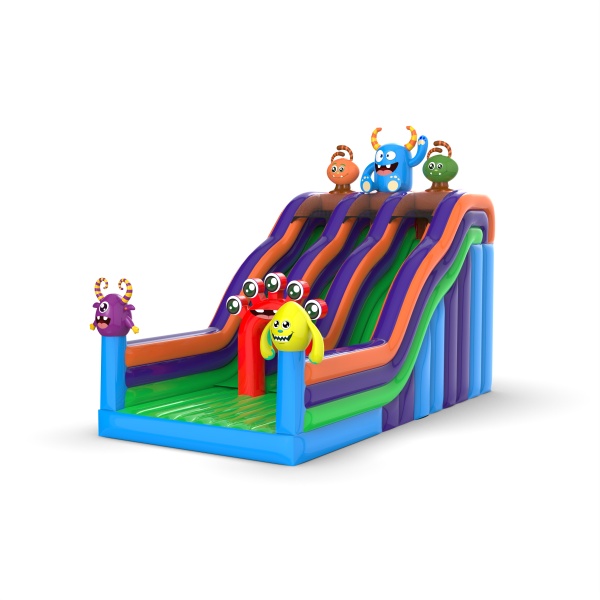 Biztosítson izgalmas szórakozást a gyerekeknek a színes szörny témájú dupla csúszdánkkal! A humoros figurák és a vibráló színek garantálják a gondtalan szórakozást, ideális fesztiválokra, családi piknikekre és más szabadtéri rendezvényekre. Egy attrakció, amely mindig mosolyt és érdeklődést csal a kicsik arcára!