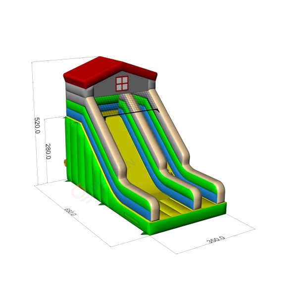 Mint minden felfújható attrakciónk, ez a termék is kiváló minőségű anyagokból készült – jelen esetben nagy szakítószilárdságú, új generációs PVC-ből. Ez a Felfújható csúszda farm témával 6,5 m x 3,5 m x 5,2 m méretű (hosszúság, szélesség és magasság). Megfelel a EN 14960 európai szabványnak, amely a felfújható szórakoztató eszközök biztonságára vonatkozik. Az attrakció működtetéséhez ajánlott fúvókat a csomag tartalmazza. Ahogyan attrakcióink többségére, erre a felfújható játékra is 2 év garanciát vállalunk. A Gangaru-nál gondoskodunk róla, hogy minél kevesebb dolgod legyen – a csomag tartalmazza az összes szükséges rögzítő tartozékot is (kötélzet, cövekek). A felfújható játékot független szakértő is bevizsgálta a biztonsági előírások szerint.