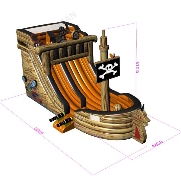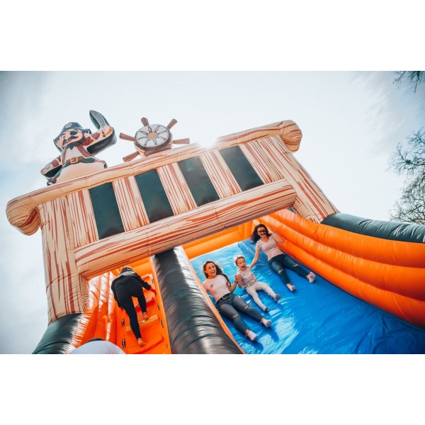 A Felfújható csúszda kalózhajó egy fantasztikus felfújható játék gyerekeknek és fiataloknak. Kiválóan kombinálható más, különféle motívumú attrakcióinkkal. A Felfújható csúszda kalózhajó már távolról felkelti a gyerekek figyelmét – ahol csak megjelenik, azonnal népszerű lesz. A rendezvények legkisebb résztvevői imádják a vidám szórakozást, így ez a csúszda garantáltan az egyik legkedveltebb felfújható játék lehet kínálatodban. Az ebbe a kategóriába tartozó felfújható játékok látványosak, gyakran gazdagon díszítettek, és sok elemet tartalmaznak, amelyek ösztönzik a mozgásos játékot a szabadban.