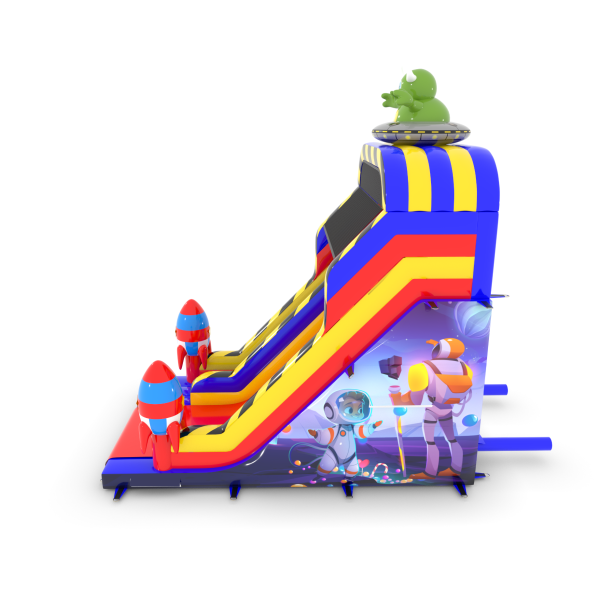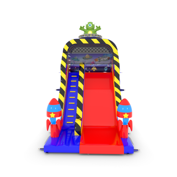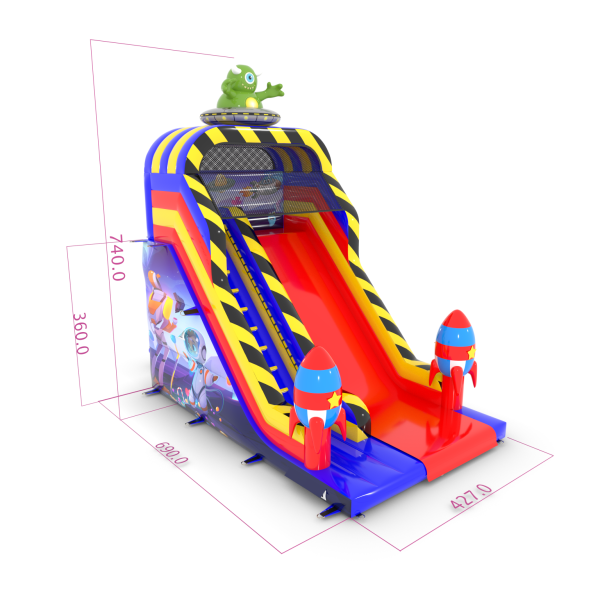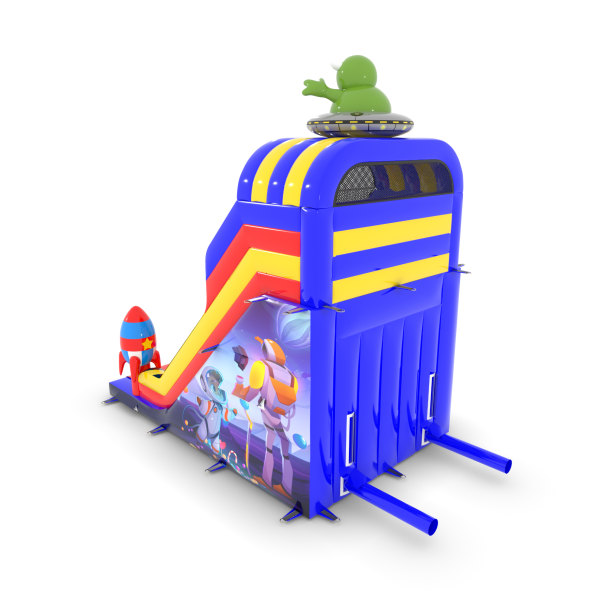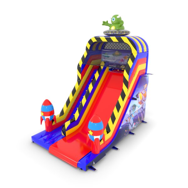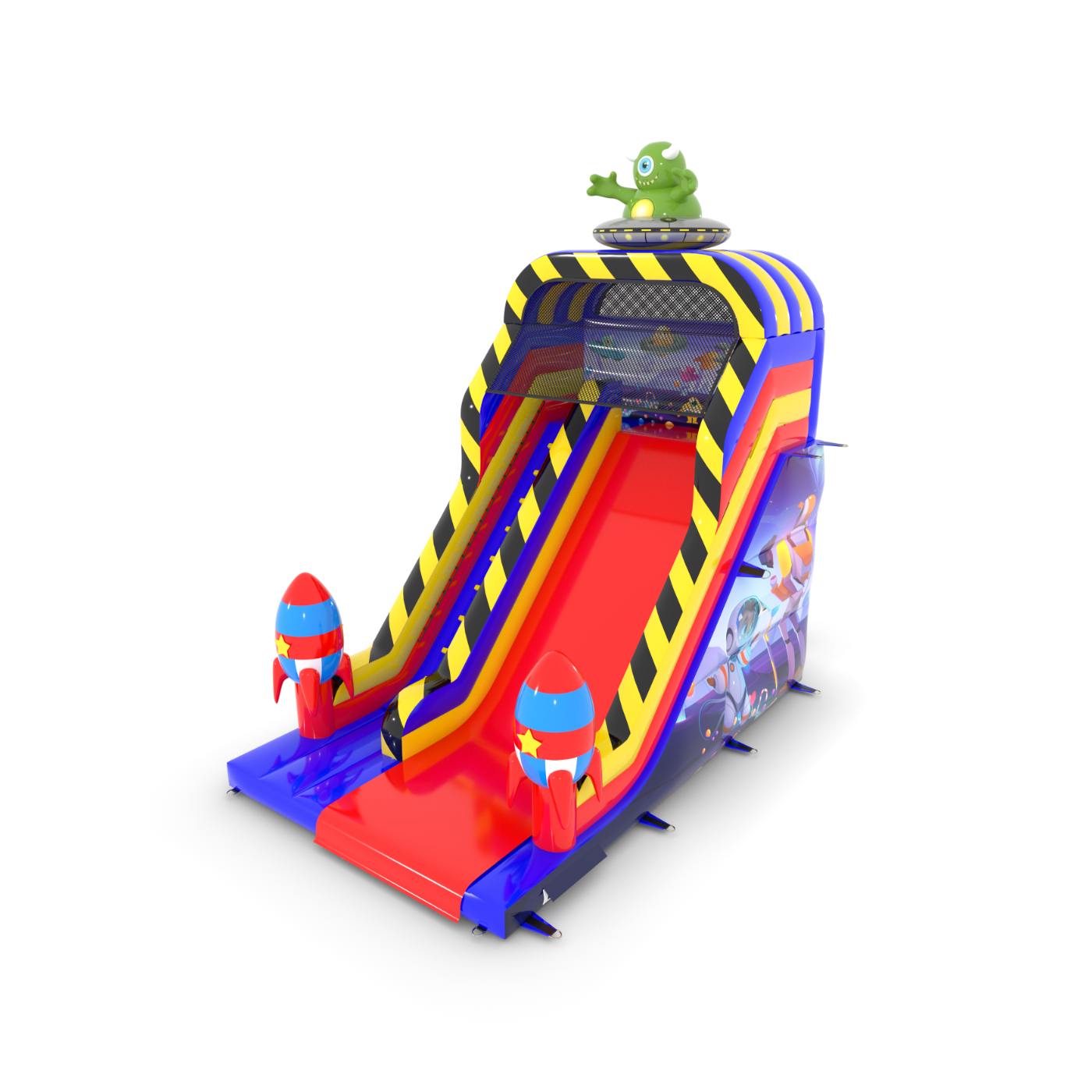 Egy feltűnő űrdia, amely azonnal magára vonja a rendezvény résztvevőinek figyelmét. Dinamikus színek, 3D rakéták és egy zöld lény a tetején a bolygóközi kalandok egyedülálló hangulatát teremtik meg. A csúszda nagy magassága és széles felülete intenzív izgalmat és nagy felhasználói áramlást biztosít. Ideális attrakció nagy fesztiválok, családi piknikek és tudományos-fantasztikus témájú rendezvények számára.