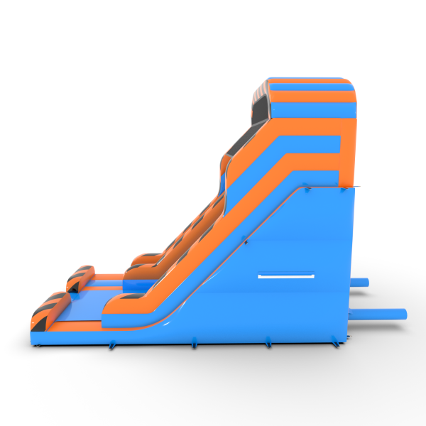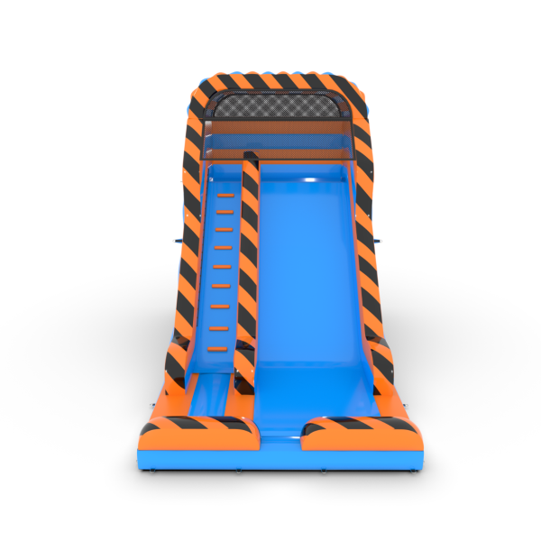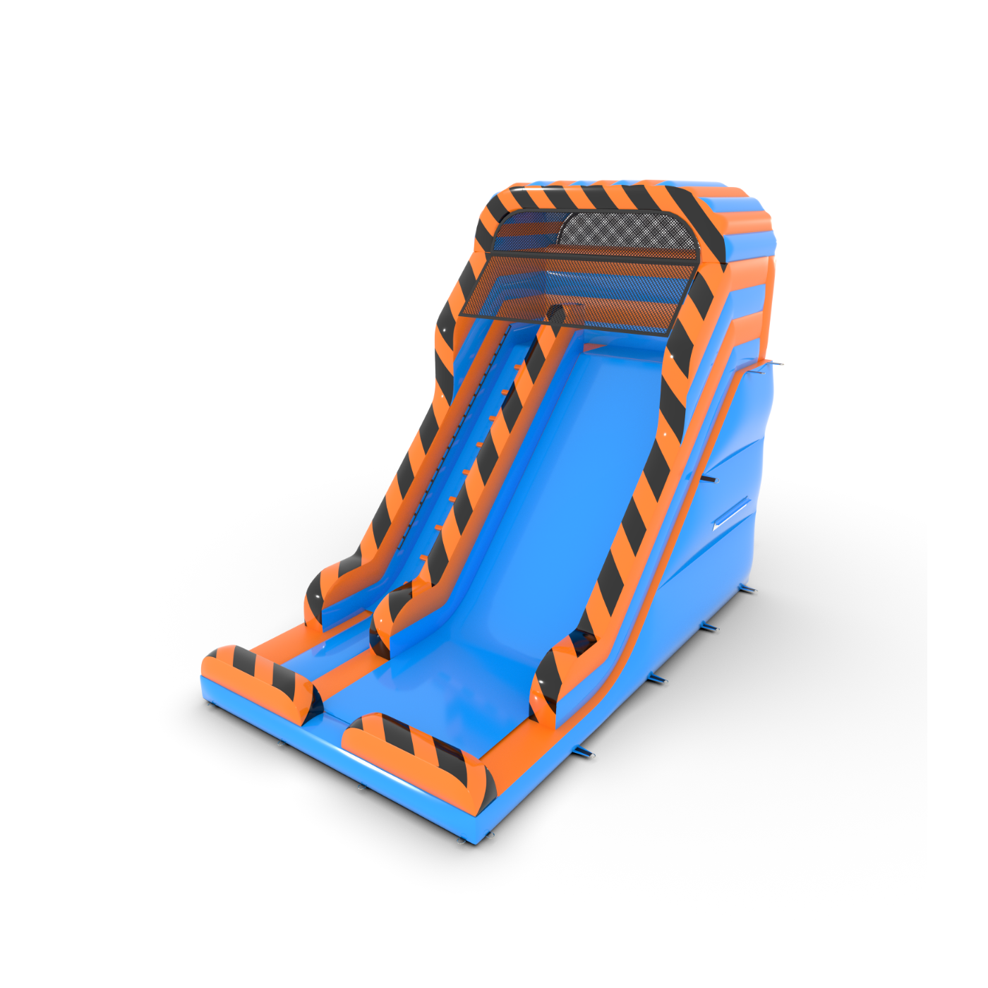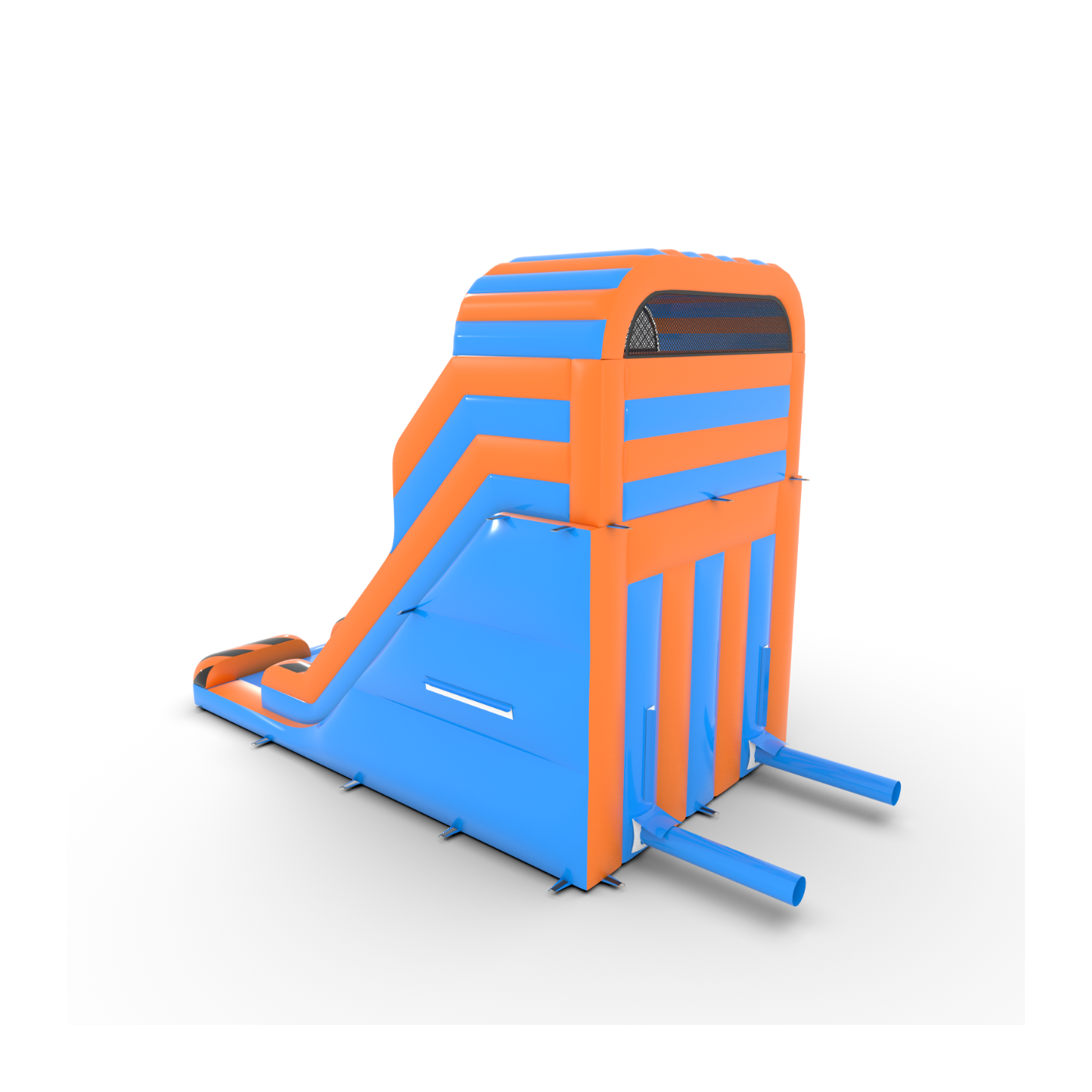 Robusztus és sokoldalú sávos csúszda, amely bármilyen esemény forgatókönyvében működik - a helyi piknikektől a nagyvállalati rendezvényekig. Az egyszerű forma és az intenzív, technikai stílusú színek szemet gyönyörködtetőek, és számos tervezési témához illeszkednek. A sávos biztonsági funkciók növelik a résztvevők biztonságát, a magas kialakítás pedig garantálja az izgalmas csúszdázást. Ideális választás olyan kölcsönző cégek számára, amelyek tartós és sokoldalú, nagy áramlású attrakciót keresnek gyermekek vagy felnőttek számára.