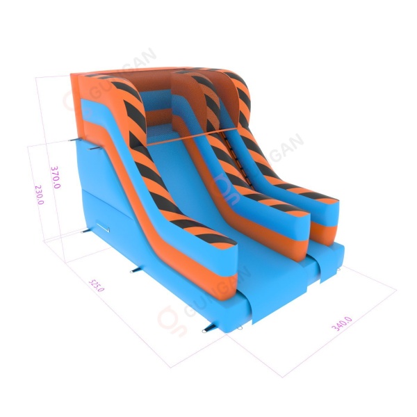 Mint minden felfújható attrakciónk, ez a termék is kiváló minőségű anyagokból készült – jelen esetben nagy szakítószilárdságú, új generációs PVC-ből. Ez a Kicsi klasszikus csúszda - 2,3 m platform 5,25 m x 3,4 m x 3,7 m méretű (hosszúság, szélesség és magasság). Megfelel a EN 14960 európai szabványnak, amely a felfújható szórakoztató eszközök biztonságára vonatkozik. Az attrakció működtetéséhez ajánlott fúvókat a csomag tartalmazza. Ahogyan attrakcióink többségére, erre a felfújható játékra is 2 év garanciát vállalunk. A Gangaru-nál gondoskodunk róla, hogy minél kevesebb dolgod legyen – a csomag tartalmazza az összes szükséges rögzítő tartozékot is (kötélzet, cövekek). A felfújható játékot független szakértő is bevizsgálta a biztonsági előírások szerint.