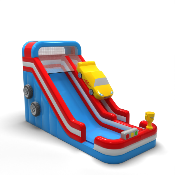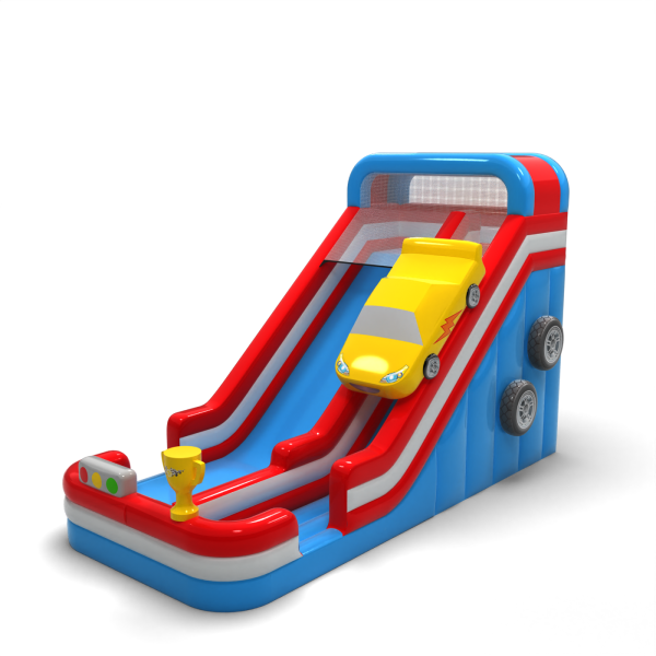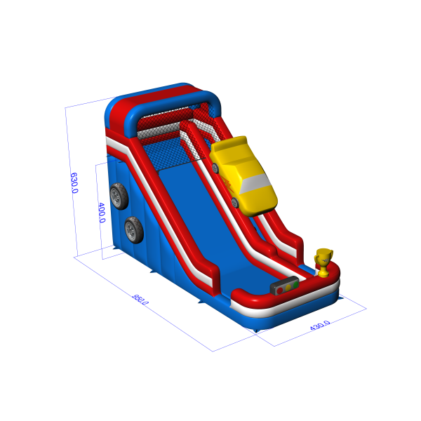 A Megnagyobbított felfújható csúszda autós témában egy fantasztikus felfújható játék gyerekeknek és fiataloknak. Kiválóan kombinálható más, különféle motívumú attrakcióinkkal. A Megnagyobbított felfújható csúszda autós témában már távolról felkelti a gyerekek figyelmét – ahol csak megjelenik, azonnal népszerű lesz. A rendezvények legkisebb résztvevői imádják a vidám szórakozást, így ez a csúszda garantáltan az egyik legkedveltebb felfújható játék lehet kínálatodban. Az ebbe a kategóriába tartozó felfújható játékok látványosak, gyakran gazdagon díszítettek, és sok elemet tartalmaznak, amelyek ösztönzik a mozgásos játékot a szabadban.