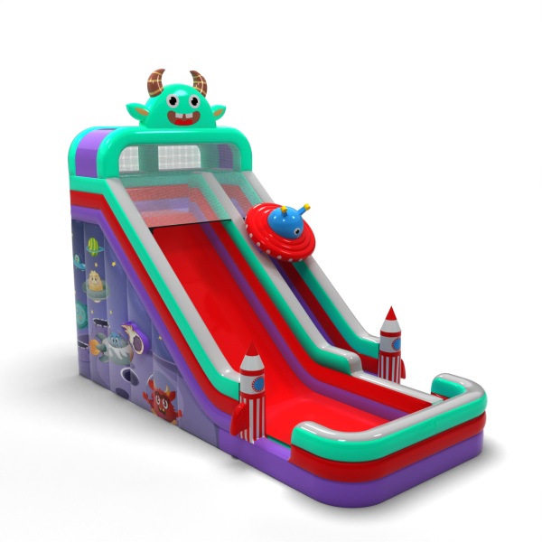 A modern, űrtémájú, ufó és rakétákkal díszített csúszda egy olyan szerkezet, amely dinamikus kialakításával tűnik ki, és leköti a kicsik figyelmét. A térbeli oldalgrafika, a dekoratív 3D elemek és a magas csúszdapálya garantálja a nagy látogatottságot a rendezvények során. Olyan vállalatok számára jelent lehetőséget, amelyek olyan attrakciót keresnek, amely illeszkedik a futurisztikus rendezvényforgatókönyvekhez vagy az ismeretterjesztő tudományos piknikekhez.