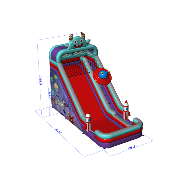A Megnagyobbított felfújható csúszda űr témában egy fantasztikus felfújható játék gyerekeknek és fiataloknak. Kiválóan kombinálható más, különféle motívumú attrakcióinkkal. A Megnagyobbított felfújható csúszda űr témában már távolról felkelti a gyerekek figyelmét – ahol csak megjelenik, azonnal népszerű lesz. A rendezvények legkisebb résztvevői imádják a vidám szórakozást, így ez a csúszda garantáltan az egyik legkedveltebb felfújható játék lehet kínálatodban. Az ebbe a kategóriába tartozó felfújható játékok látványosak, gyakran gazdagon díszítettek, és sok elemet tartalmaznak, amelyek ösztönzik a mozgásos játékot a szabadban.