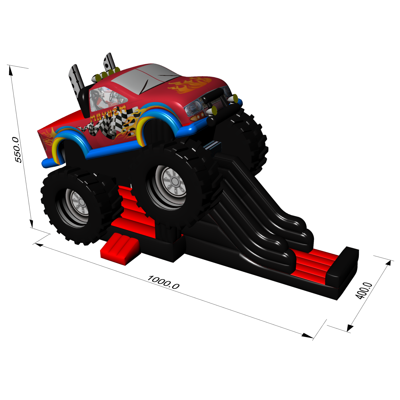 A Monster Truck felfújható csúszda egy fantasztikus felfújható játék gyerekeknek és fiataloknak. Kiválóan kombinálható más, különféle motívumú attrakcióinkkal. A Monster Truck felfújható csúszda már távolról felkelti a gyerekek figyelmét – ahol csak megjelenik, azonnal népszerű lesz. A rendezvények legkisebb résztvevői imádják a vidám szórakozást, így ez a csúszda garantáltan az egyik legkedveltebb felfújható játék lehet kínálatodban. Az ebbe a kategóriába tartozó felfújható játékok látványosak, gyakran gazdagon díszítettek, és sok elemet tartalmaznak, amelyek ösztönzik a mozgásos játékot a szabadban.