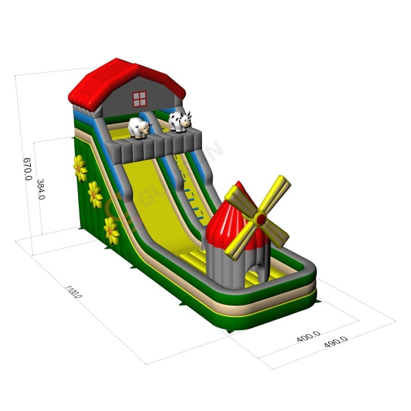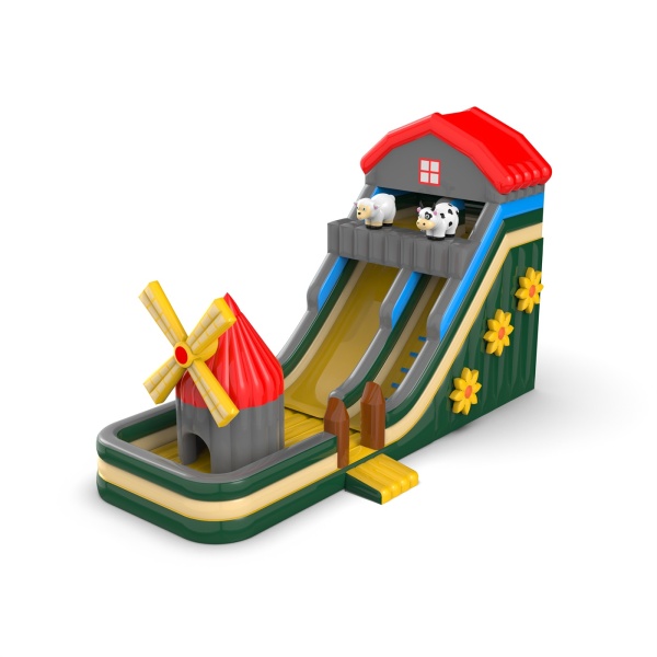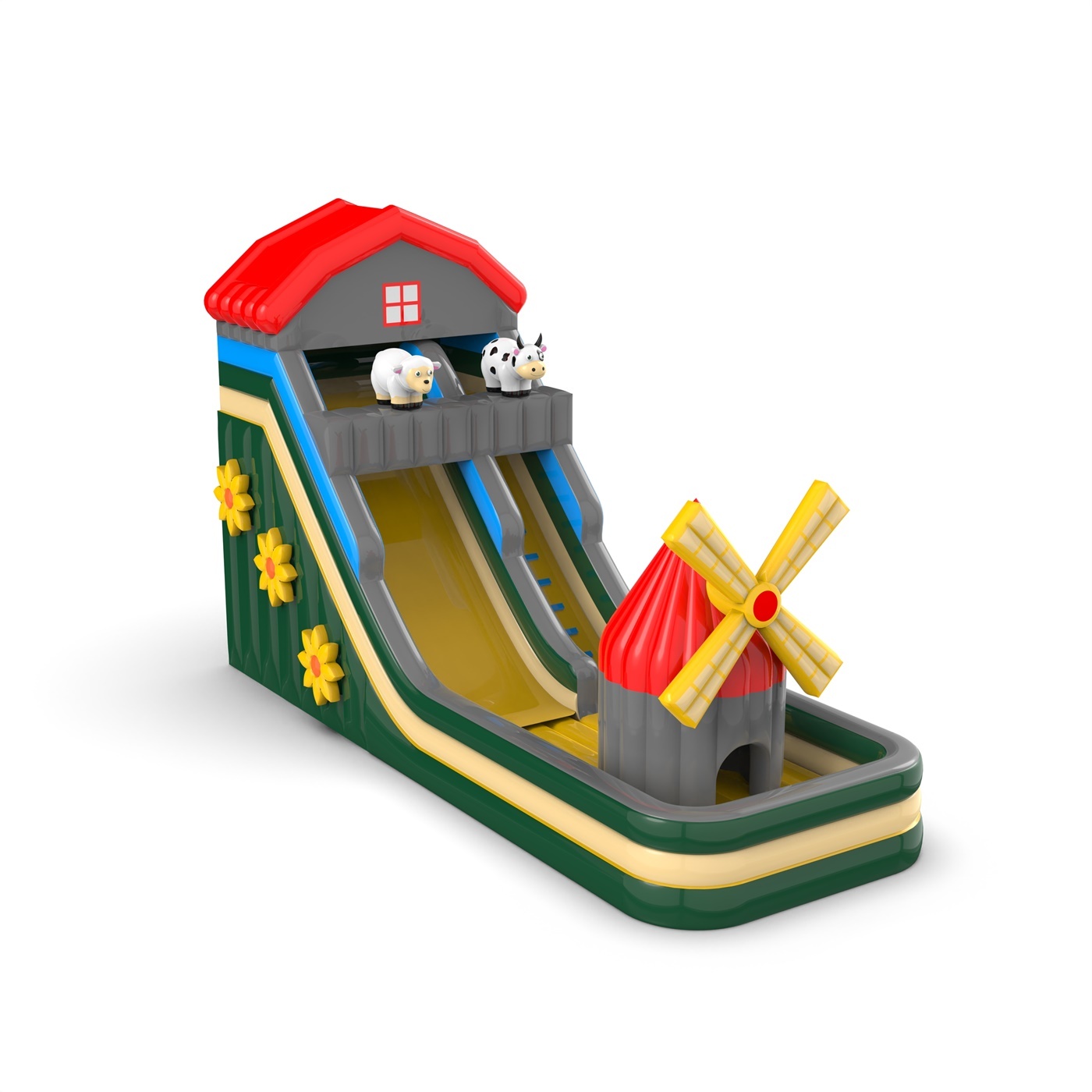 Fedezze fel a vidéki élet örömeit a nagy felfújható csúszdánkkal a farm témában! Nagy méretével és a vidéki táj ihlette színes részleteivel ez a látványosság órákig tartó aktív szórakozásra csábítja a gyerekeket. Ideális szabadtéri partikra, fesztiválokra és piknikekre, ahol a gyerekek úgy érezhetik, mintha egy igazi farmon lennének!