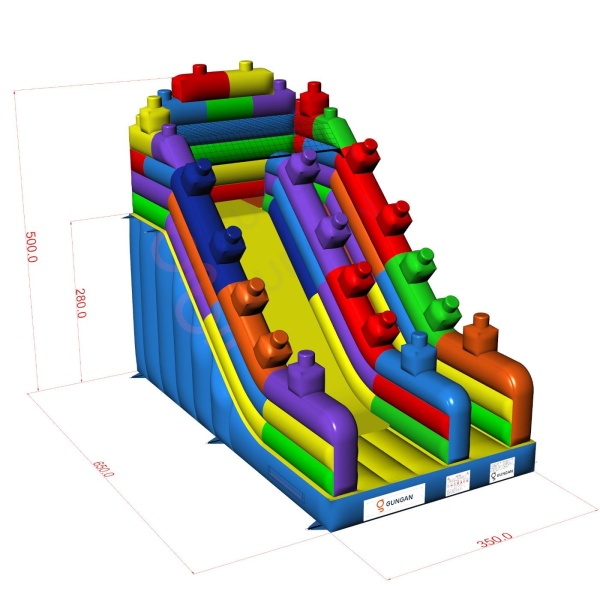 A Színes blokkok felfújható csúszda egy fantasztikus felfújható játék gyerekeknek és fiataloknak. Kiválóan kombinálható más, különféle motívumú attrakcióinkkal. A Színes blokkok felfújható csúszda már távolról felkelti a gyerekek figyelmét – ahol csak megjelenik, azonnal népszerű lesz. A rendezvények legkisebb résztvevői imádják a vidám szórakozást, így ez a csúszda garantáltan az egyik legkedveltebb felfújható játék lehet kínálatodban. Az ebbe a kategóriába tartozó felfújható játékok látványosak, gyakran gazdagon díszítettek, és sok elemet tartalmaznak, amelyek ösztönzik a mozgásos játékot a szabadban.