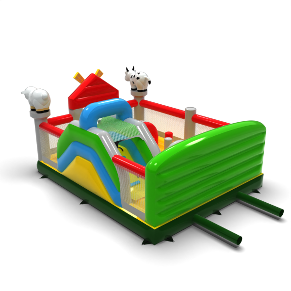 A 6x5 felfújható játszótér farm témában elsősorban azoknak a gyerekeknek készült, akik kalandra vágynak barátaikkal és kortársaikkal való játék közben. A felfújható játszótér körülkerített és puha felületű, így használata teljesen biztonságos. Rendszerint egy nagyobb és egy kisebb csúszda található benne, ezért különböző korú gyerekek is élvezettel játszhatnak rajta. A 6x5 felfújható játszótér farm témában kiválóan alkalmas családi piknikekre, csapatépítő vagy céges rendezvényekre és más típusú eseményekre – legyenek azok szabadtériek vagy beltériek. A felfújható játszóterek remek alternatívát jelentenek a nagyobb és igényesebb felfújható attrakciókkal szemben. Különösen ajánljuk ezt az attrakciót kezdő vállalkozások számára.