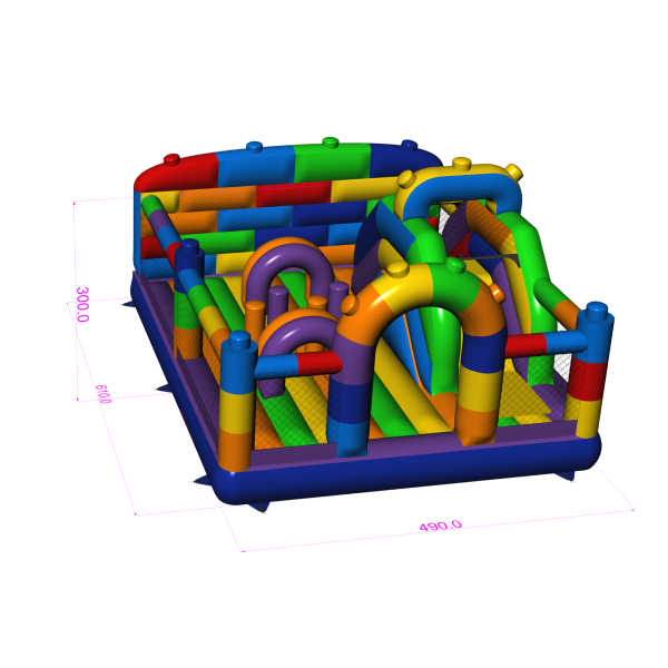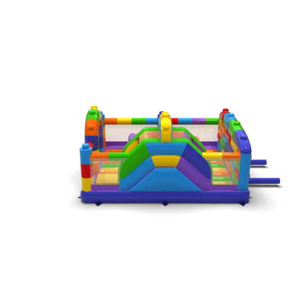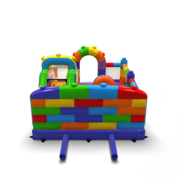 Sokoldalúan felhasználható attrakció a gyermekek számára, amely színes blokkokból álló motívumának köszönhetően bármilyen szabadtéri rendezvényen, játszótéren, iskolában, óvodában vagy családi pikniken használható. Az intenzív színek szemet gyönyörködtetőek, és kiemelik ajánlatát a versenytársak közül. A játszótér számos akadályt és csúszdát tartalmaz, amelyek hosszú és biztonságos játékot garantálnak a gyermekcsoportok számára. Gyors összeszerelhetősége és intenzív használatnak való ellenállása praktikus választássá teszi a bérléshez. Válasszon egy bevált slágert, és egészítse ki kínálatát egy olyan modellel, amely leköti a gyerekeket és vonzza a szülőket!
