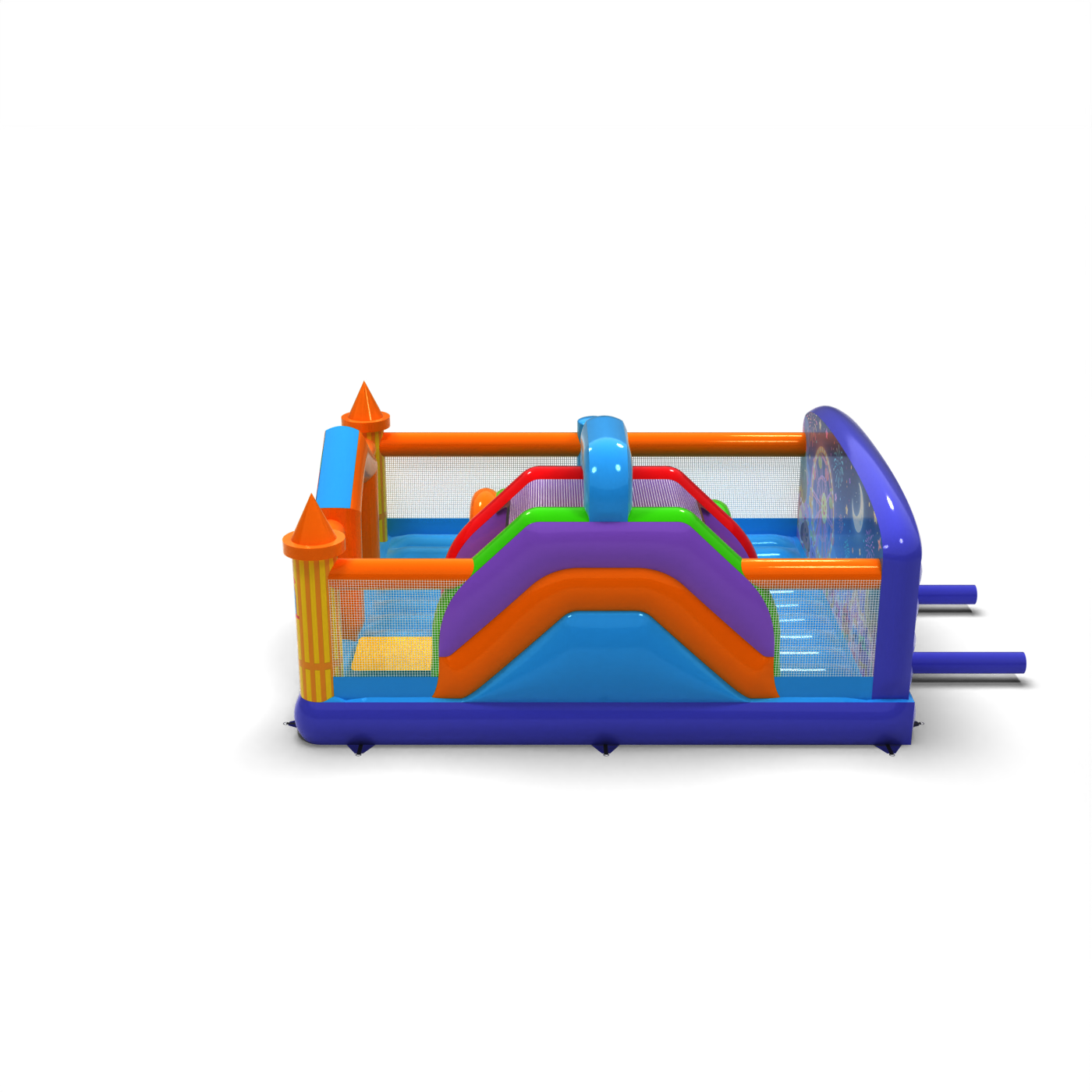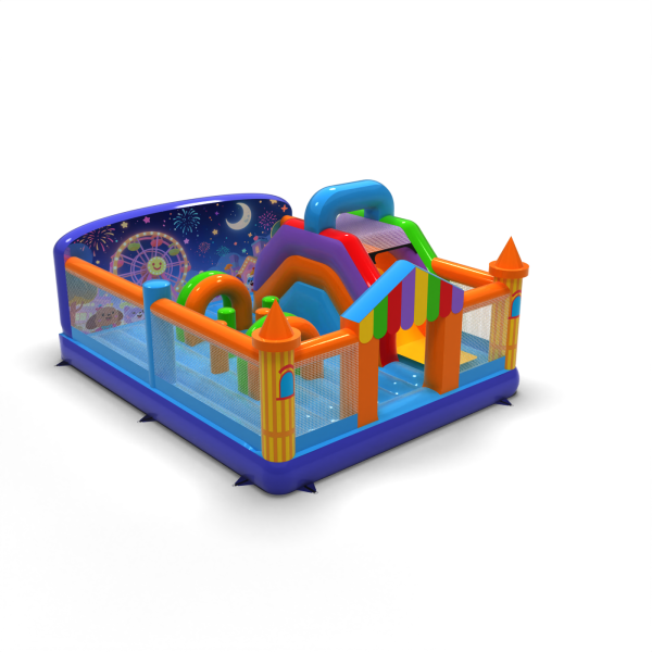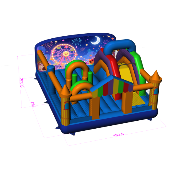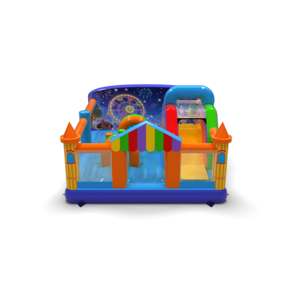 Színes attrakció családi rendezvények, fesztiválok és szórakoztató zónák számára, ahol a "wow" hatás számít. A vidámparki téma körhintákkal, fényekkel és mesebeli grafikával varázslatos hangulatot teremt, amely játékra ösztönzi a gyerekeket, és meghosszabbítja az attrakcióban eltöltött időt. Az akadálypálya, az ugróelemek és a csúszda dinamikus szórakozást nyújt egyetlen szerkezeten belül. Nagy befogadóképességének és kompakt testének köszönhetően ez a modell könnyen kezelhető és hatékonyan használja ki a helyet. Tegye kiemelkedővé a zónáját, és vonzza az izgalomra vágyó vásárlókat!