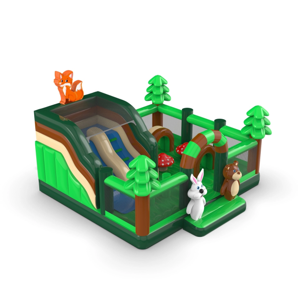 Egyedülálló felfújható játszótér, amelyet kifejezetten a természetes erdő témájára terveztek! A növény- és állatvilág természetes színeivel telített eredeti dizájnunk egyedi hangulatot teremt, amely harmonizál a környező természettel.