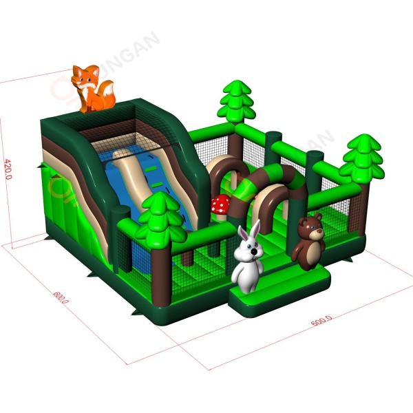 A 6x6 felfújható játszótér erdei témában elsősorban azoknak a gyerekeknek készült, akik kalandra vágynak barátaikkal és kortársaikkal való játék közben. A felfújható játszótér körülkerített és puha felületű, így használata teljesen biztonságos. Rendszerint egy nagyobb és egy kisebb csúszda található benne, ezért különböző korú gyerekek is élvezettel játszhatnak rajta. A 6x6 felfújható játszótér erdei témában kiválóan alkalmas családi piknikekre, csapatépítő vagy céges rendezvényekre és más típusú eseményekre – legyenek azok szabadtériek vagy beltériek. A felfújható játszóterek remek alternatívát jelentenek a nagyobb és igényesebb felfújható attrakciókkal szemben. Különösen ajánljuk ezt az attrakciót kezdő vállalkozások számára.