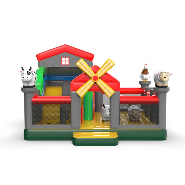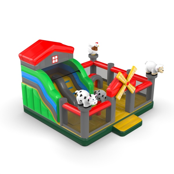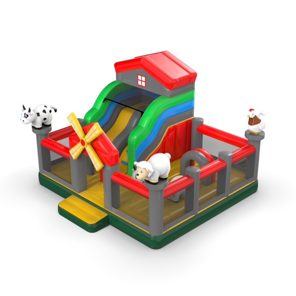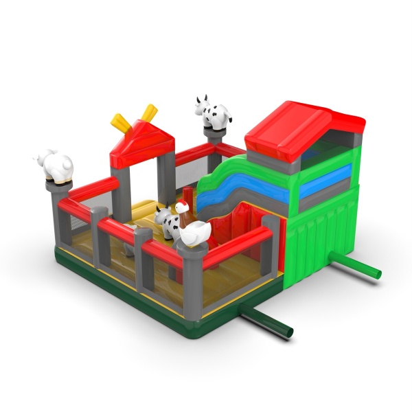 A felfújható játszótér farmtémában nagyon szórakoztató minden gyermek számára. A farm témájú felfújható játszótér biztonságos felépítése órákig biztosítja a balesetmentes szórakozást. Nézze meg, milyen állatokat nevelnek a farmon. Ugorj ki friss tejért és más finomságokért. A nagy pajta tökéletes reprodukciója tovább fokozza ennek a felfújhatónak a képét, amelyet úgy terveztünk, hogy egy gyermekcsoport órákon át szórakozhasson.