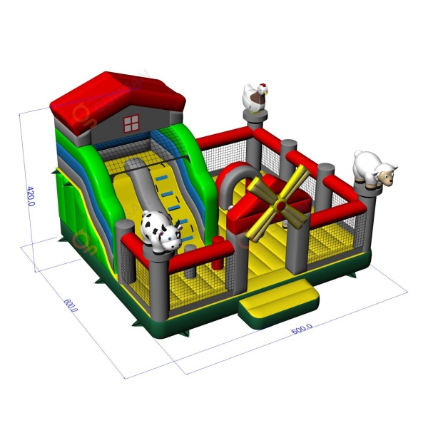 A 6x6 felfújható játszótér farm témában elsősorban azoknak a gyerekeknek készült, akik kalandra vágynak barátaikkal és kortársaikkal való játék közben. A felfújható játszótér körülkerített és puha felületű, így használata teljesen biztonságos. Rendszerint egy nagyobb és egy kisebb csúszda található benne, ezért különböző korú gyerekek is élvezettel játszhatnak rajta. A 6x6 felfújható játszótér farm témában kiválóan alkalmas családi piknikekre, csapatépítő vagy céges rendezvényekre és más típusú eseményekre – legyenek azok szabadtériek vagy beltériek. A felfújható játszóterek remek alternatívát jelentenek a nagyobb és igényesebb felfújható attrakciókkal szemben. Különösen ajánljuk ezt az attrakciót kezdő vállalkozások számára.