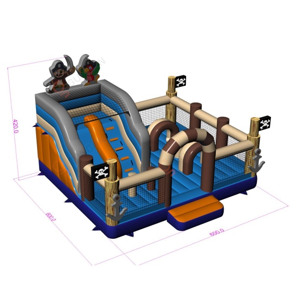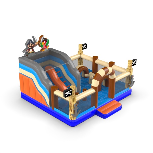 A felfújható játszótér kalóz témában egy tengeri expedíció, hogy megtaláld a korábban felfedezetlen kincseket! A kalóztémájú felfújható játék biztonságos felépítése órákig biztosítja a balesetmentes szórakozást. A kapitány és hűséges papagáj társa végig elkísér a kalandban. Ahoy kaland, gyűjtsd össze a barátaidat, és ugorjatok fel az erős és masszív kalóztémájú felfújható játszótér talapzatára.